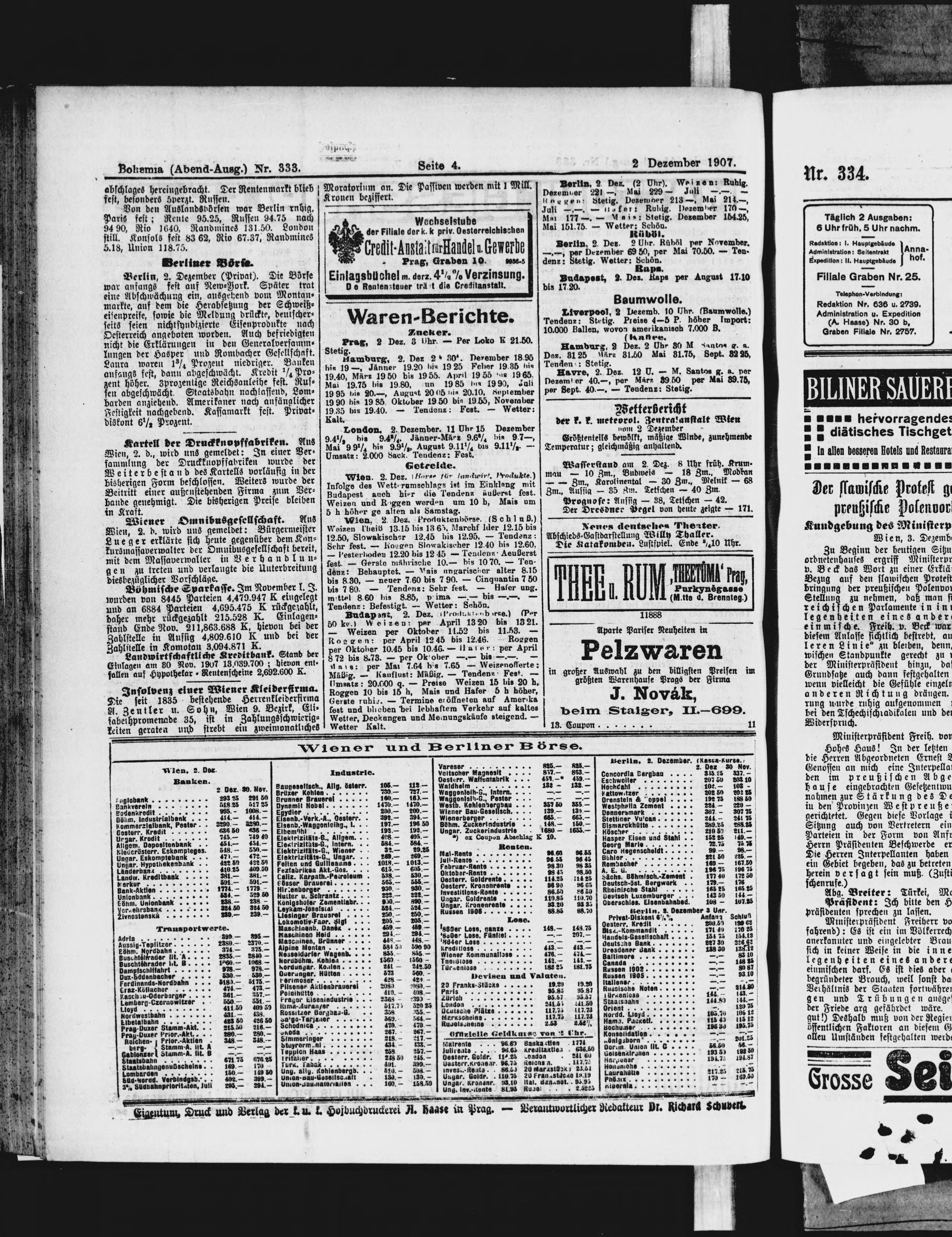 * Datum vydání výtisku: 2.12.1907 Číslo výtisku: 333 Poznámky k výtisku: večerní vydání