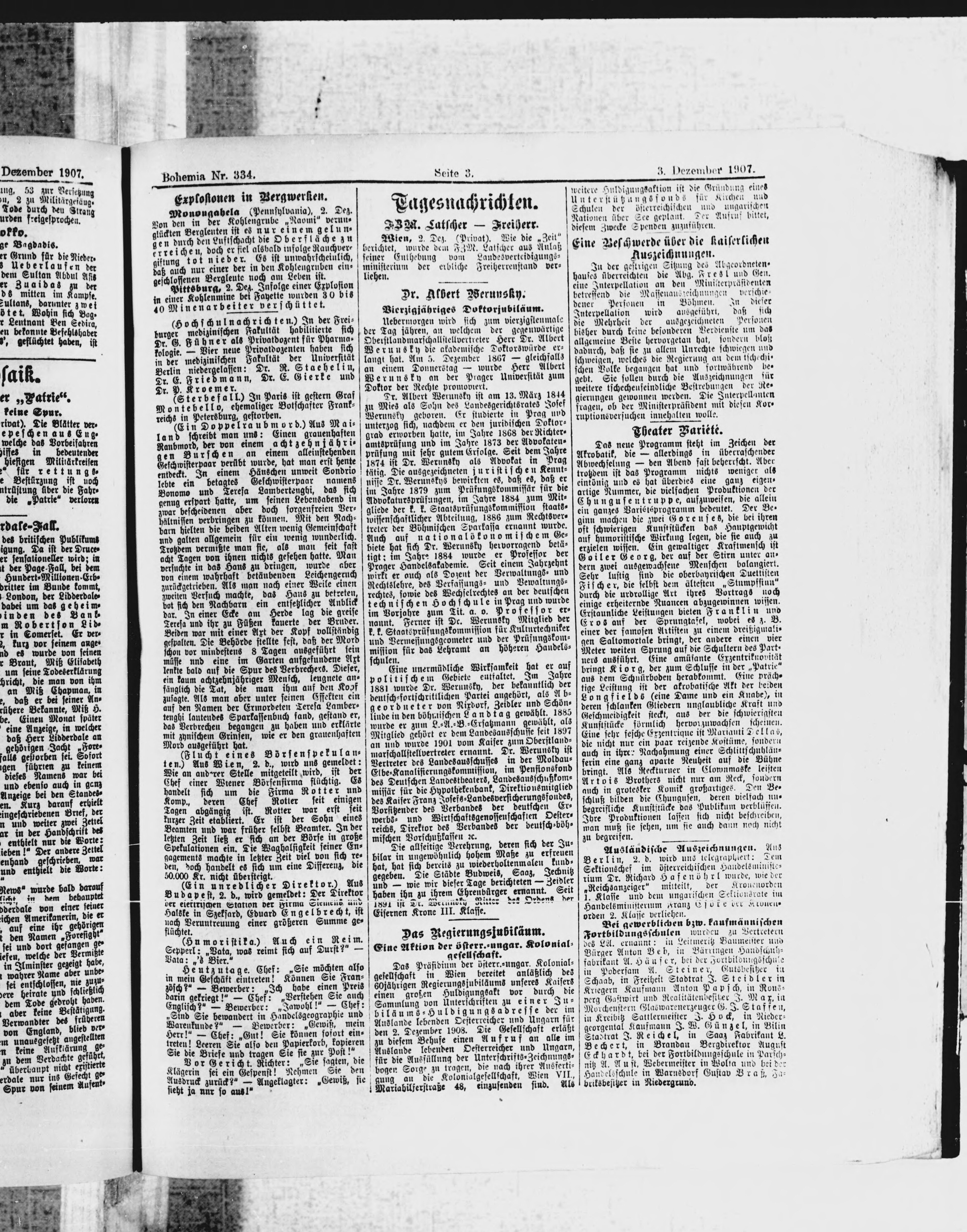 * Datum vydání výtisku: 3.12.1907 Číslo výtisku: 334 Poznámky k výtisku: ranní vydání