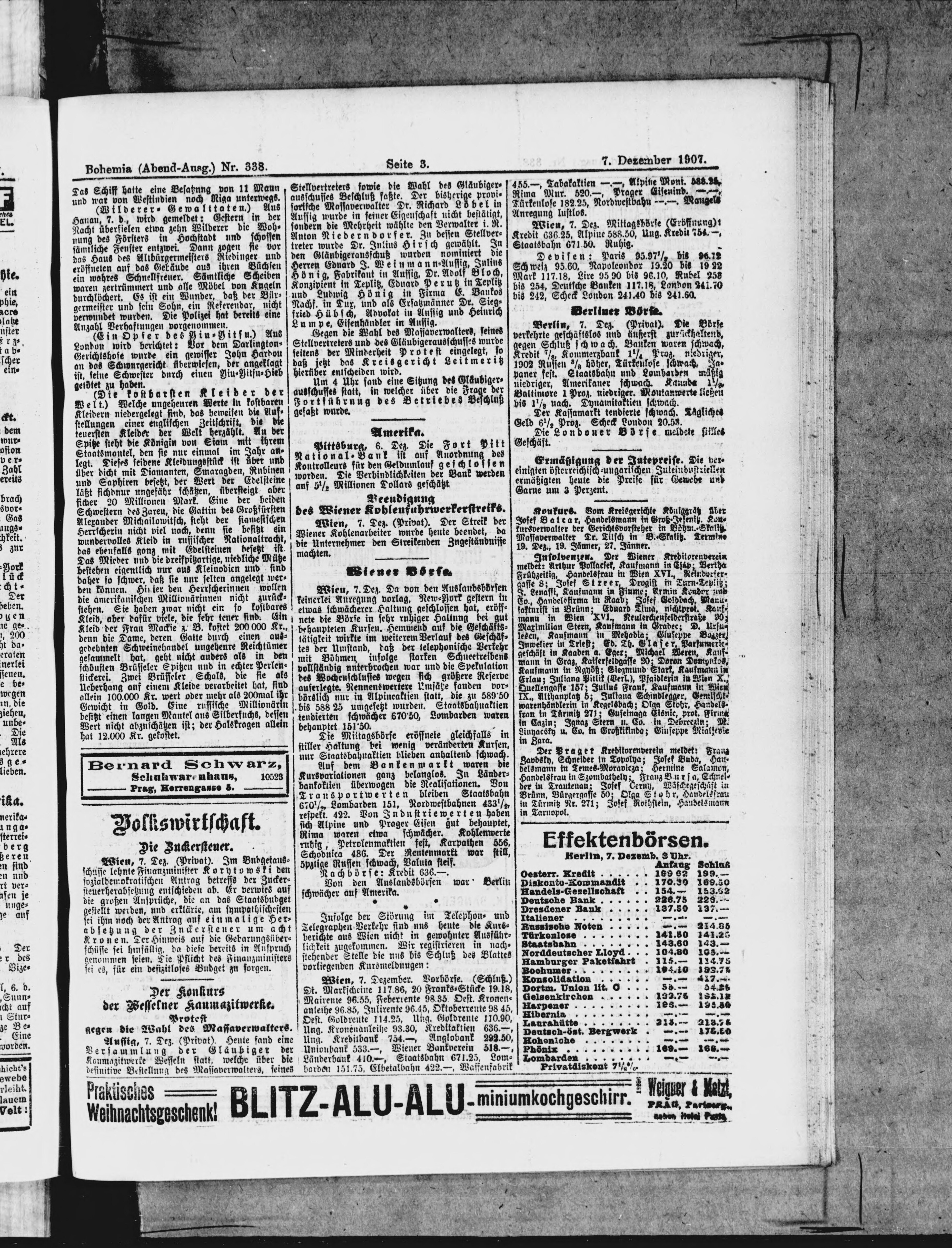 * Datum vydání výtisku: 7.12.1907 Číslo výtisku: 338 Poznámky k výtisku: večerní vydání