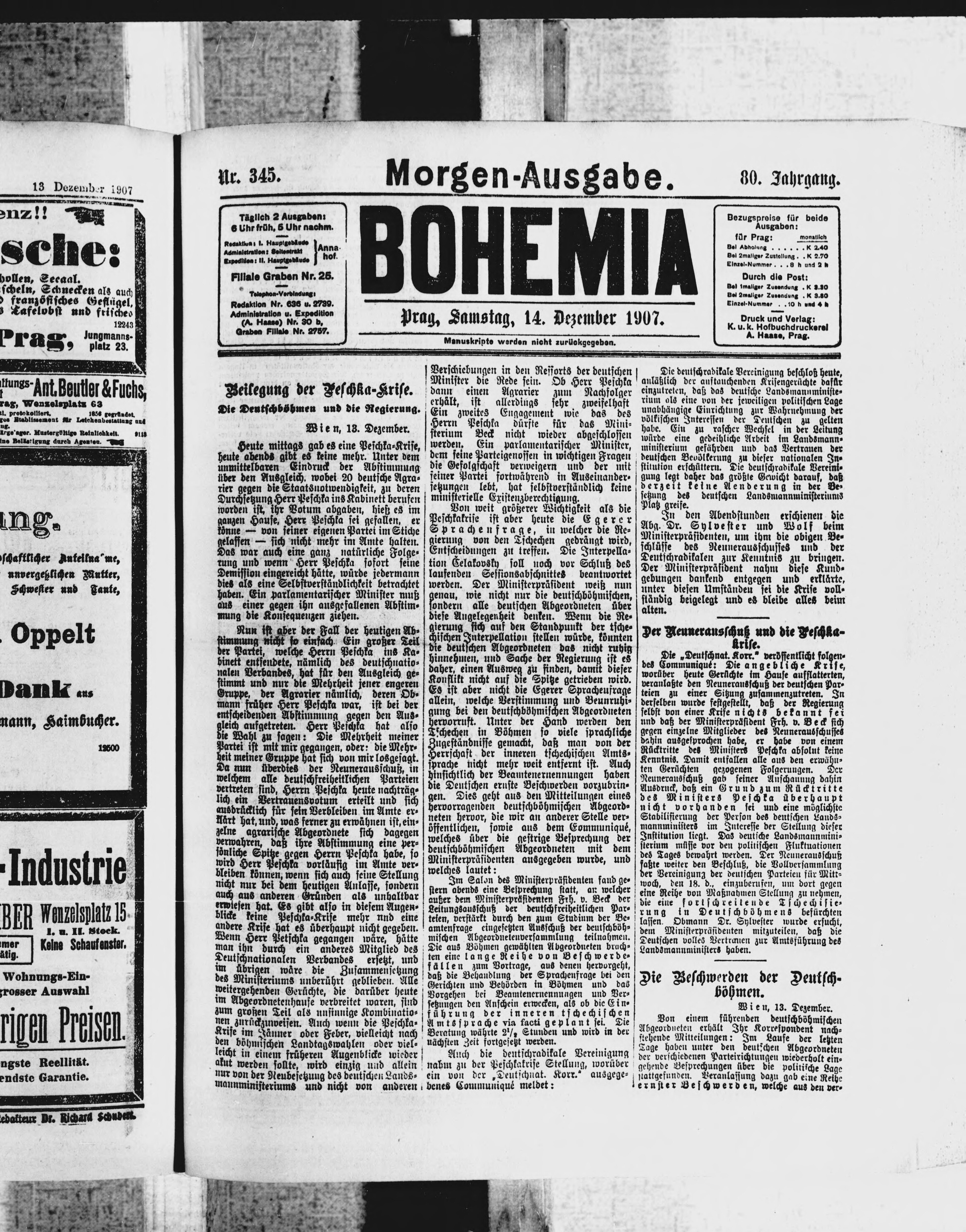 * Datum vydání výtisku: 14.12.1907 Číslo výtisku: 345 Poznámky k výtisku: ranní vydání