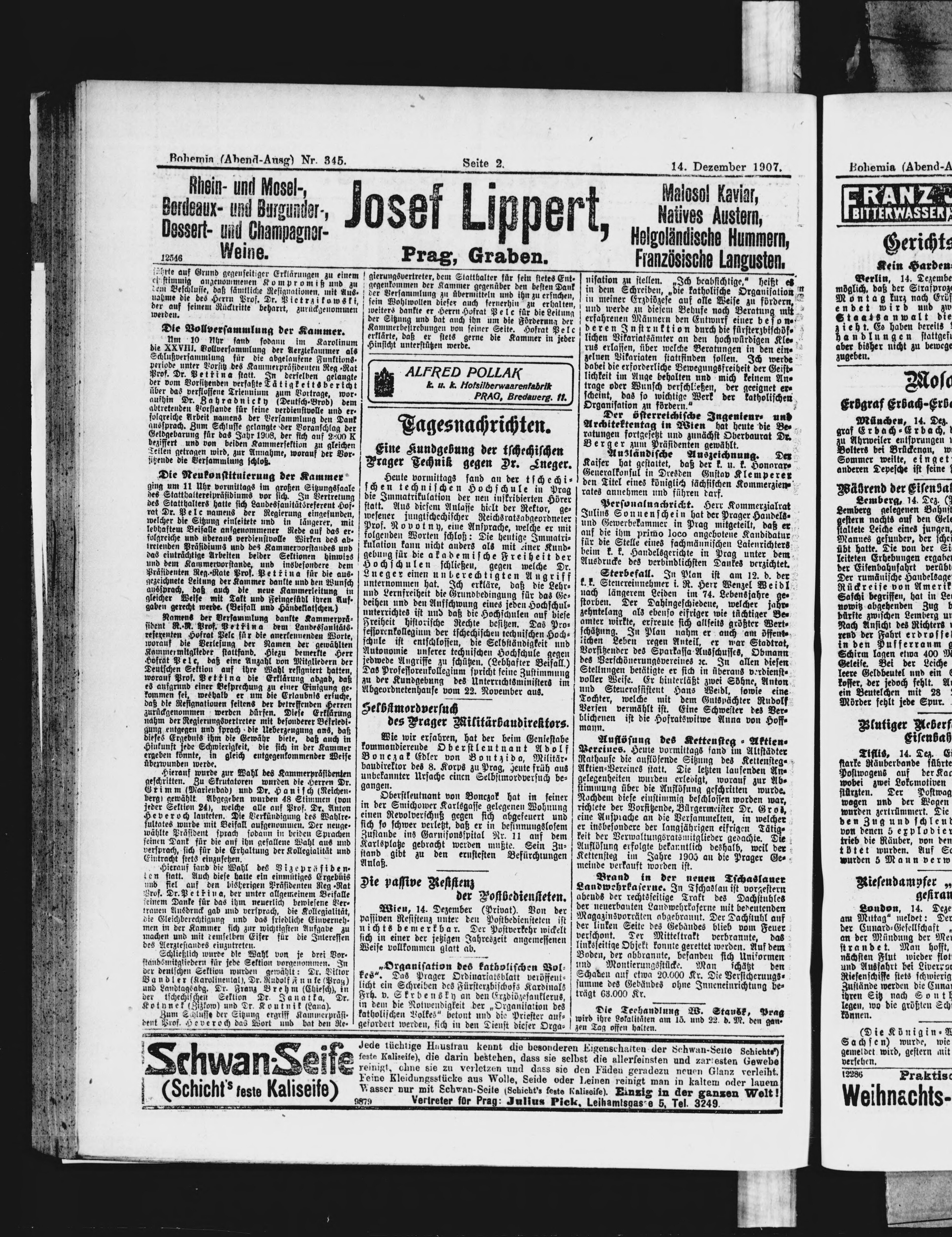 * Datum vydání výtisku: 14.12.1907 Číslo výtisku: 345 Poznámky k výtisku: večerní vydání