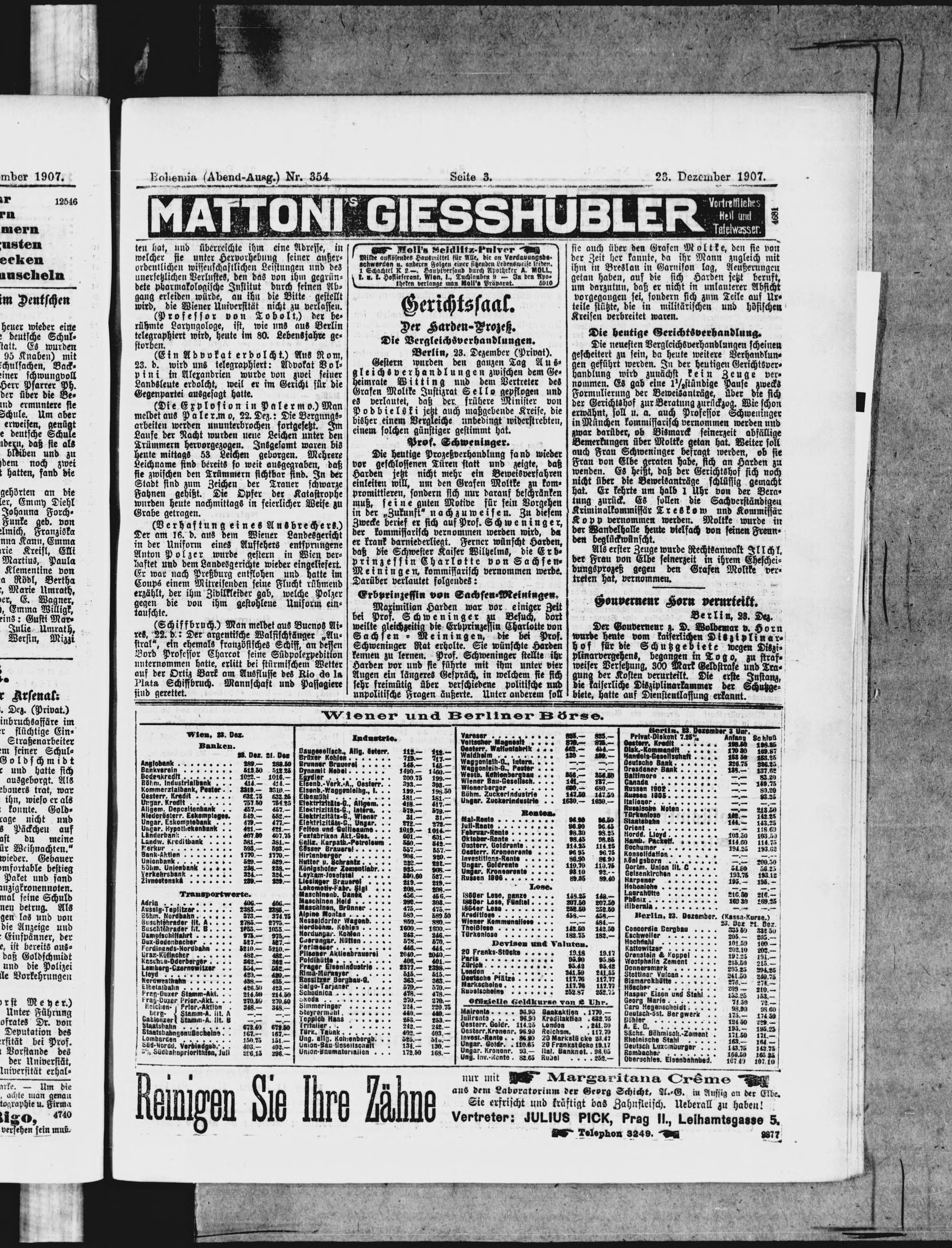 * Datum vydání výtisku: 23.12.1907 Číslo výtisku: 354 Poznámky k výtisku: večerní vydání