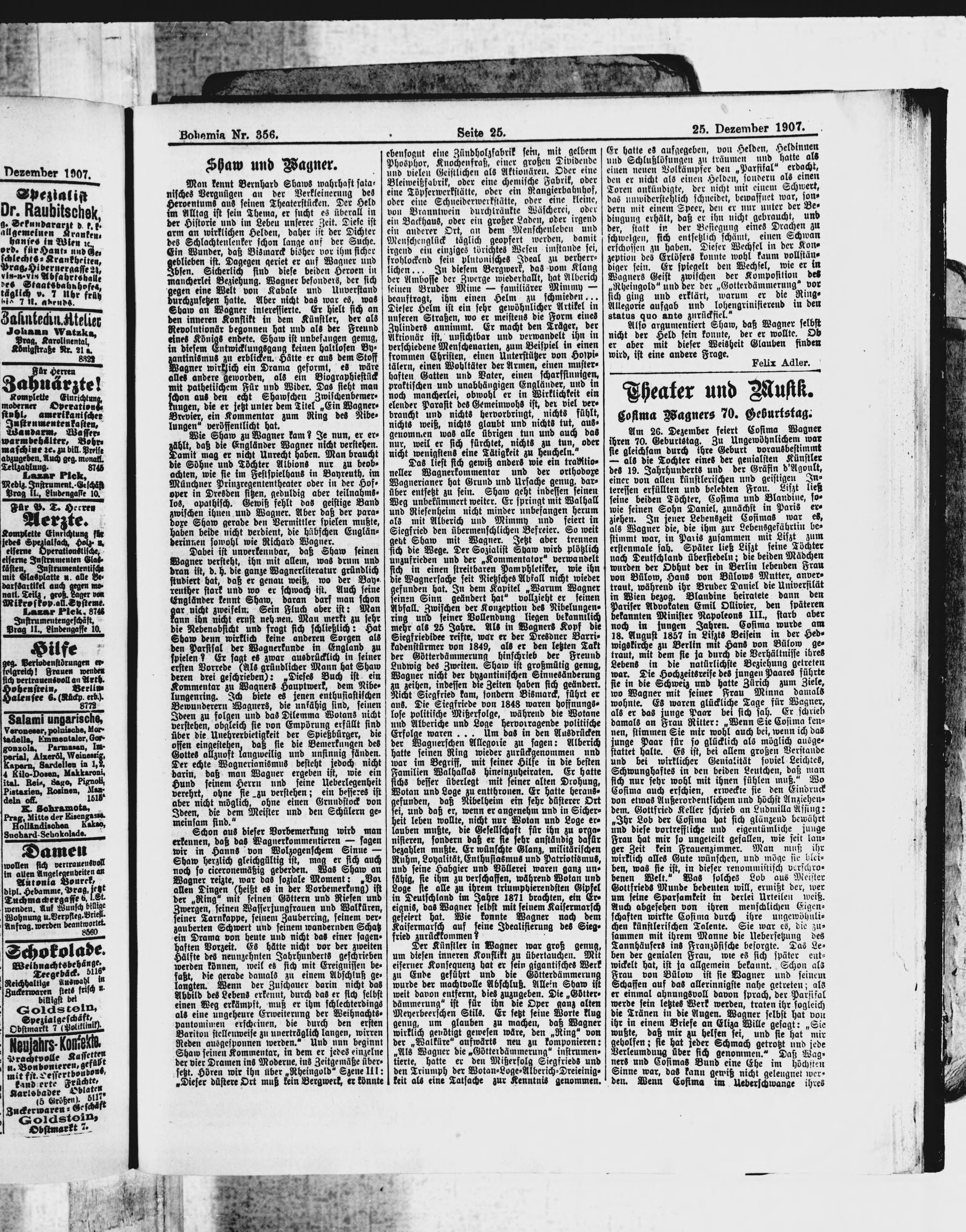 * Datum vydání výtisku: 25.12.1907 Číslo výtisku: 356 Poznámky k výtisku: ranní vydání