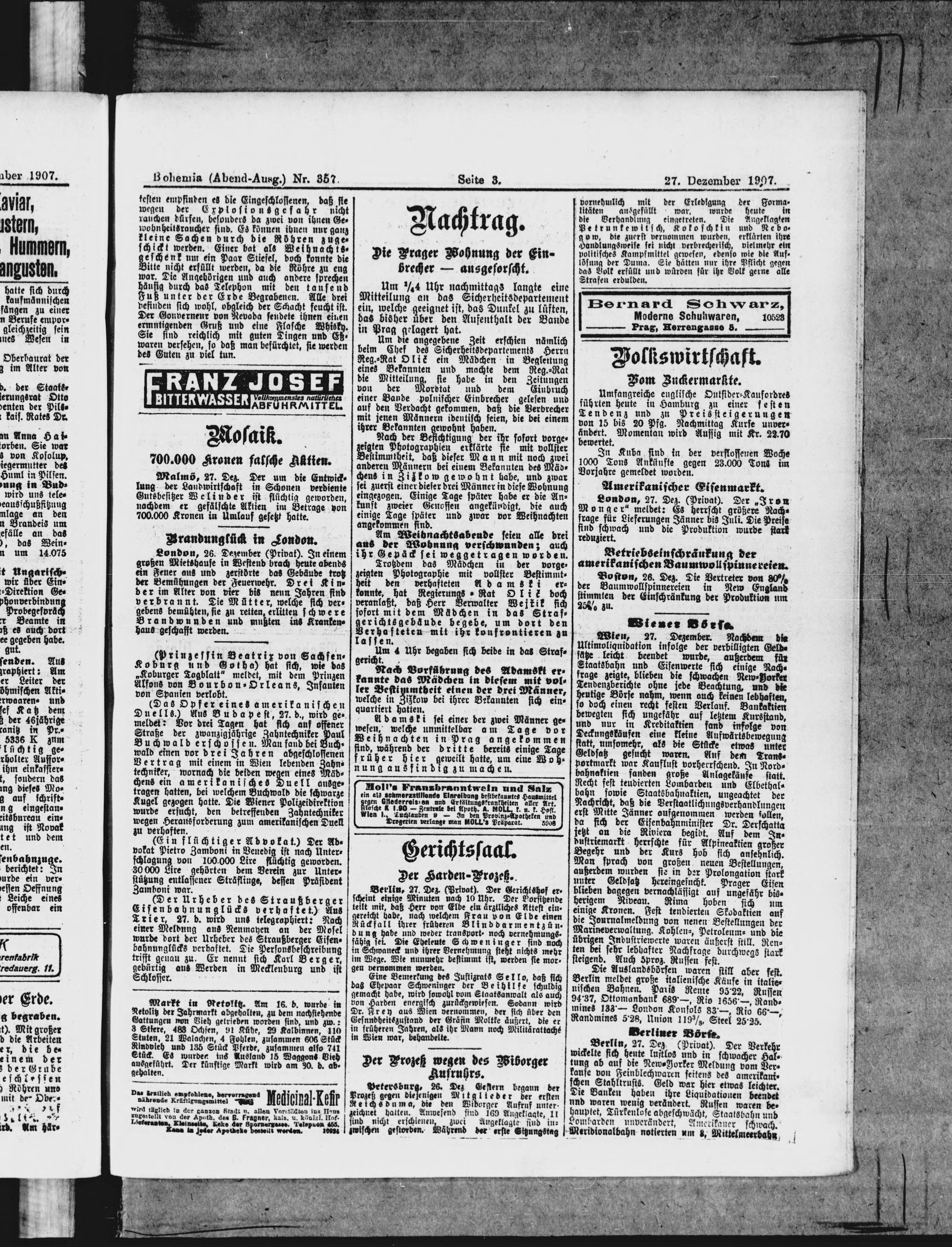 * Datum vydání výtisku: 27.12.1907 Číslo výtisku: 357 Poznámky k výtisku: večerní vydání