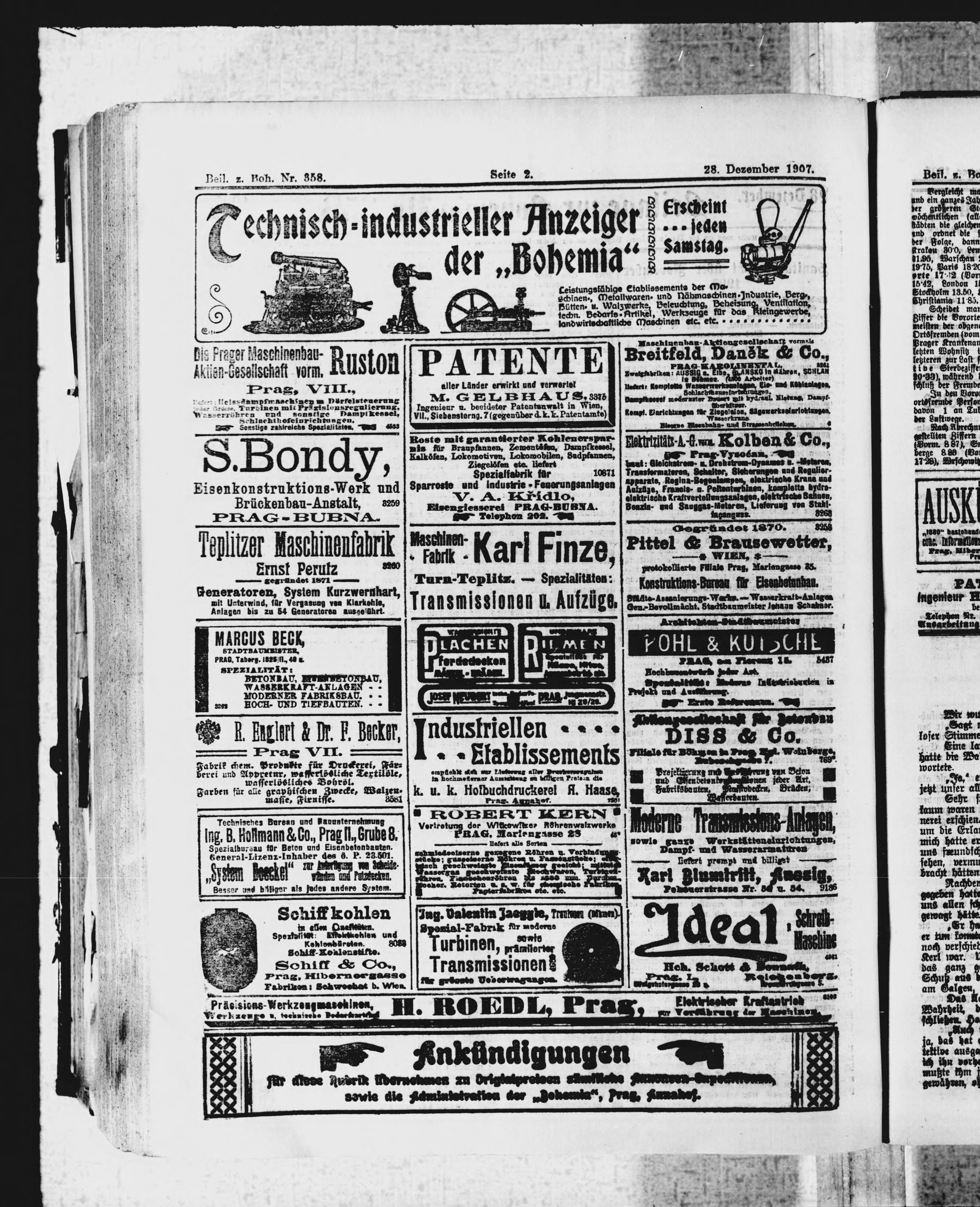 * Datum vydání výtisku: 28.12.1907 Číslo výtisku: 358 Typ výtisku: příloha