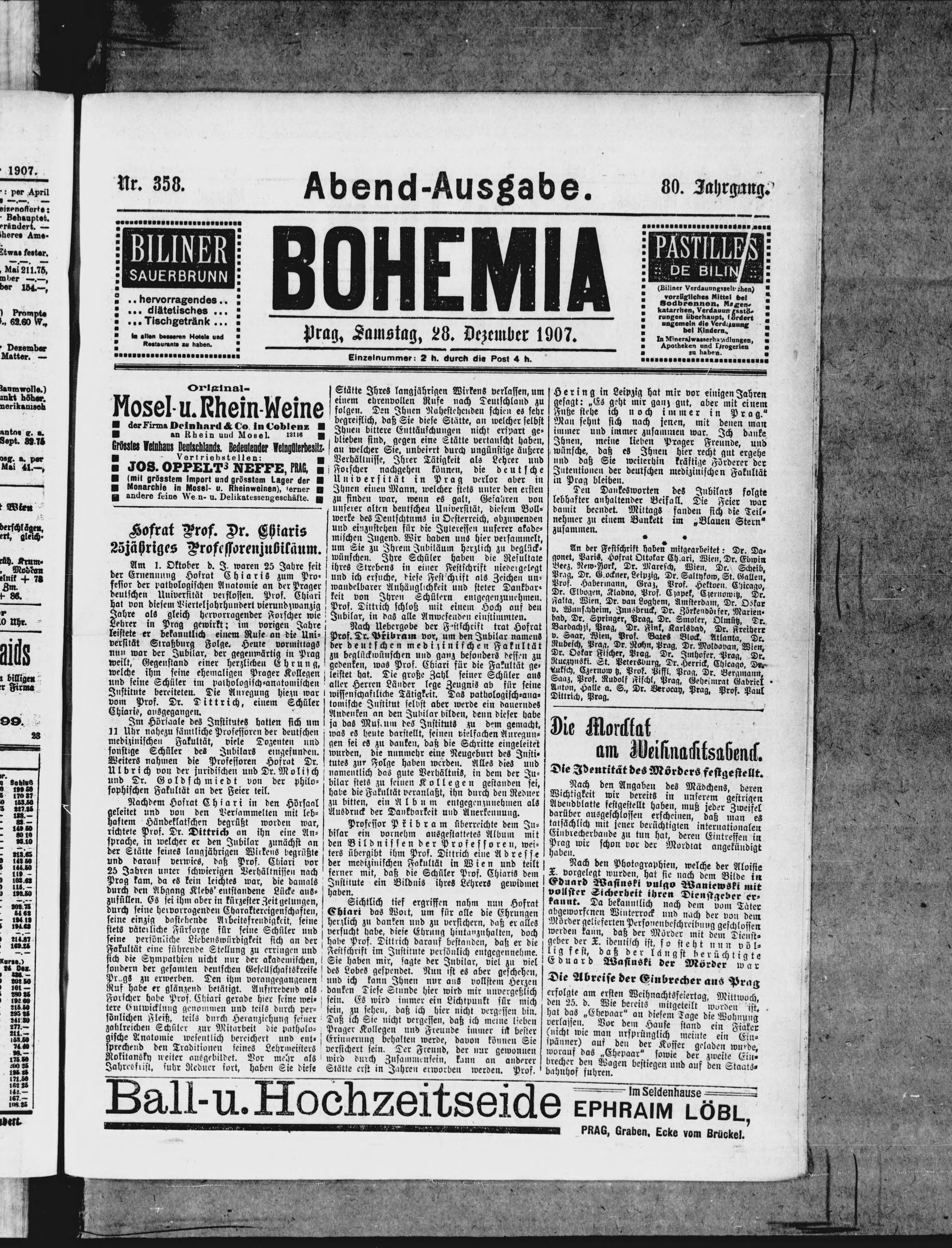 * Datum vydání výtisku: 28.12.1907 Číslo výtisku: 358 Poznámky k výtisku: večerní vydání