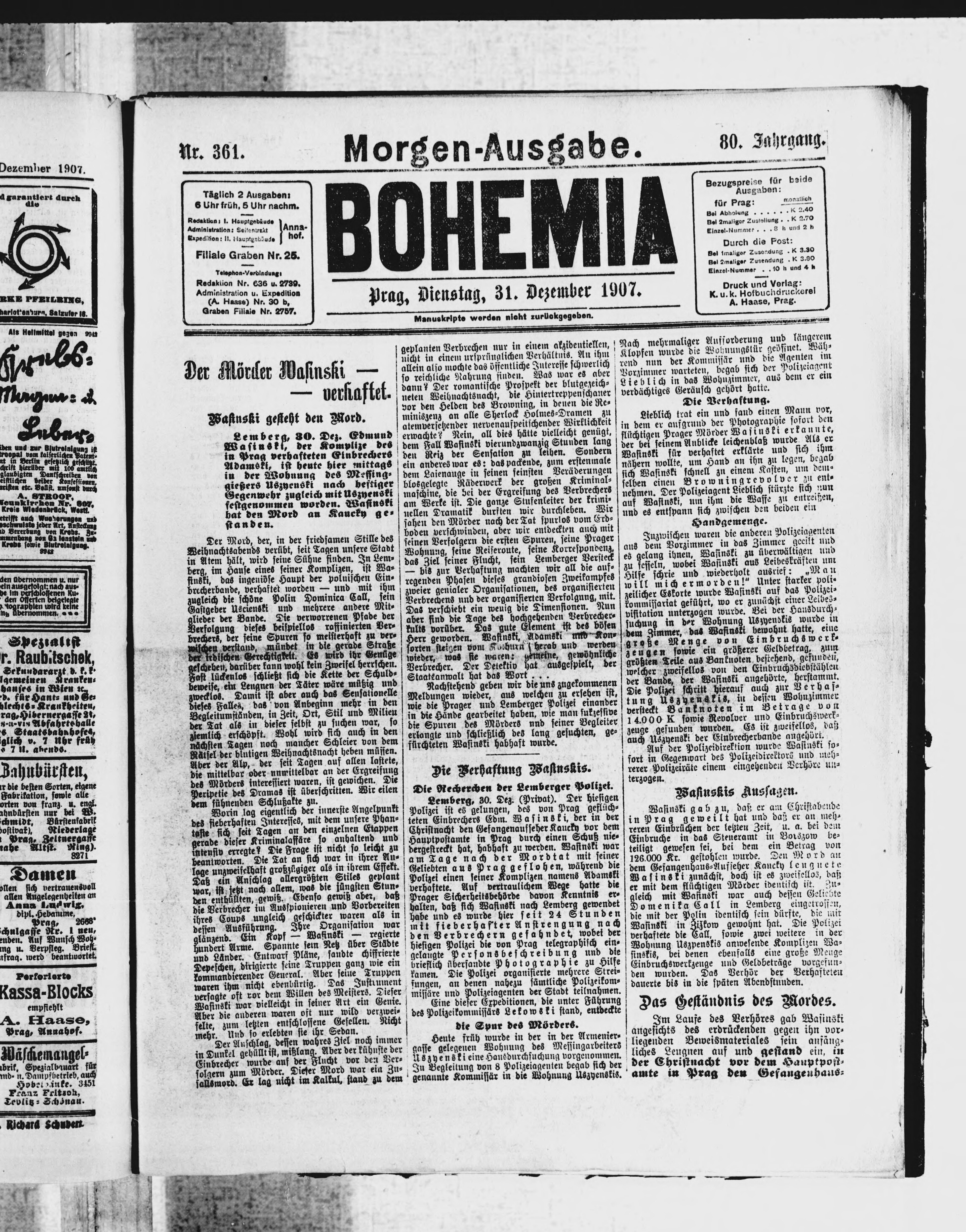 * Datum vydání výtisku: 31.12.1907 Číslo výtisku: 361 Poznámky k výtisku: ranní vydání