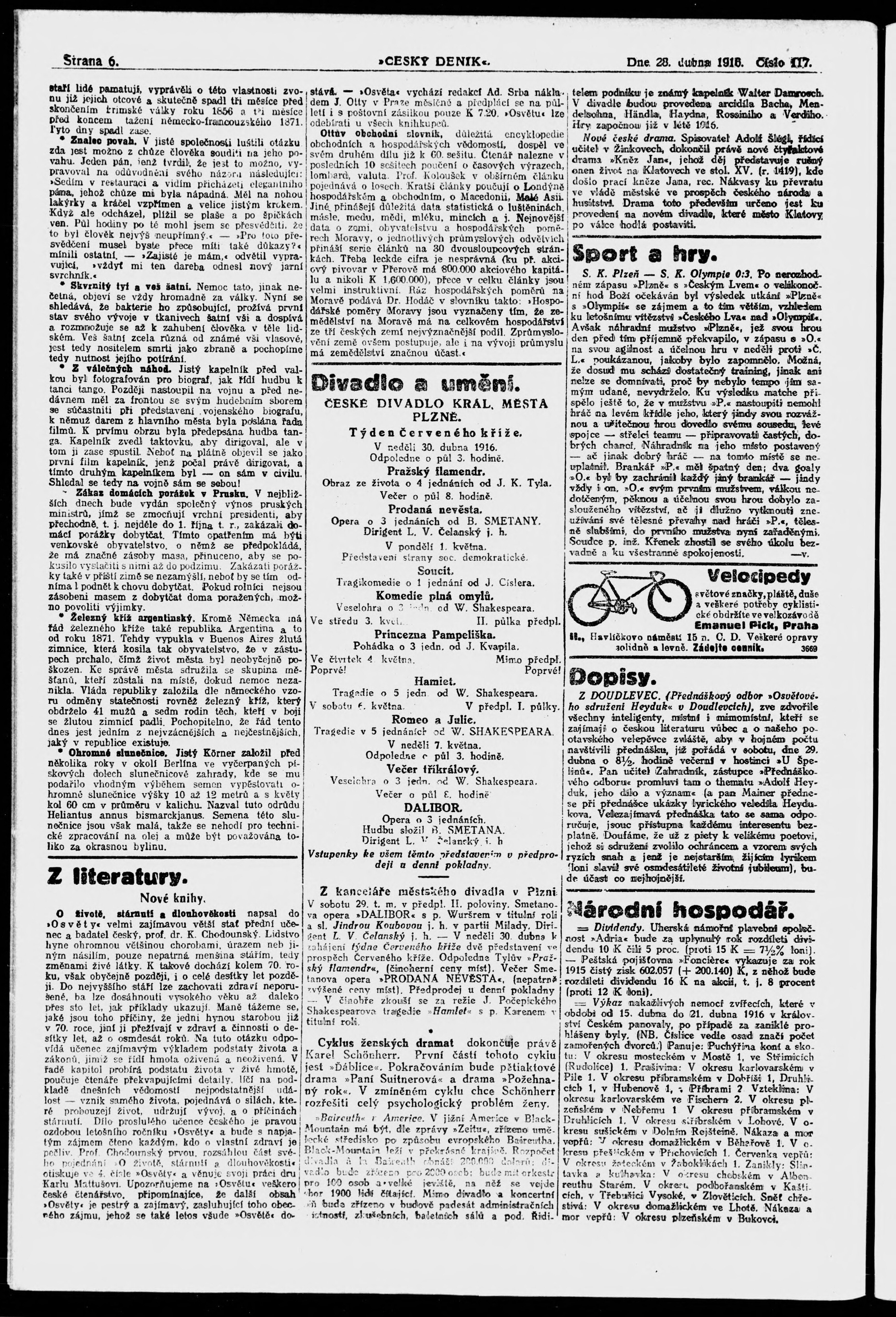 * Datum vydání výtisku: 28.4.1916 Číslo výtisku: 117