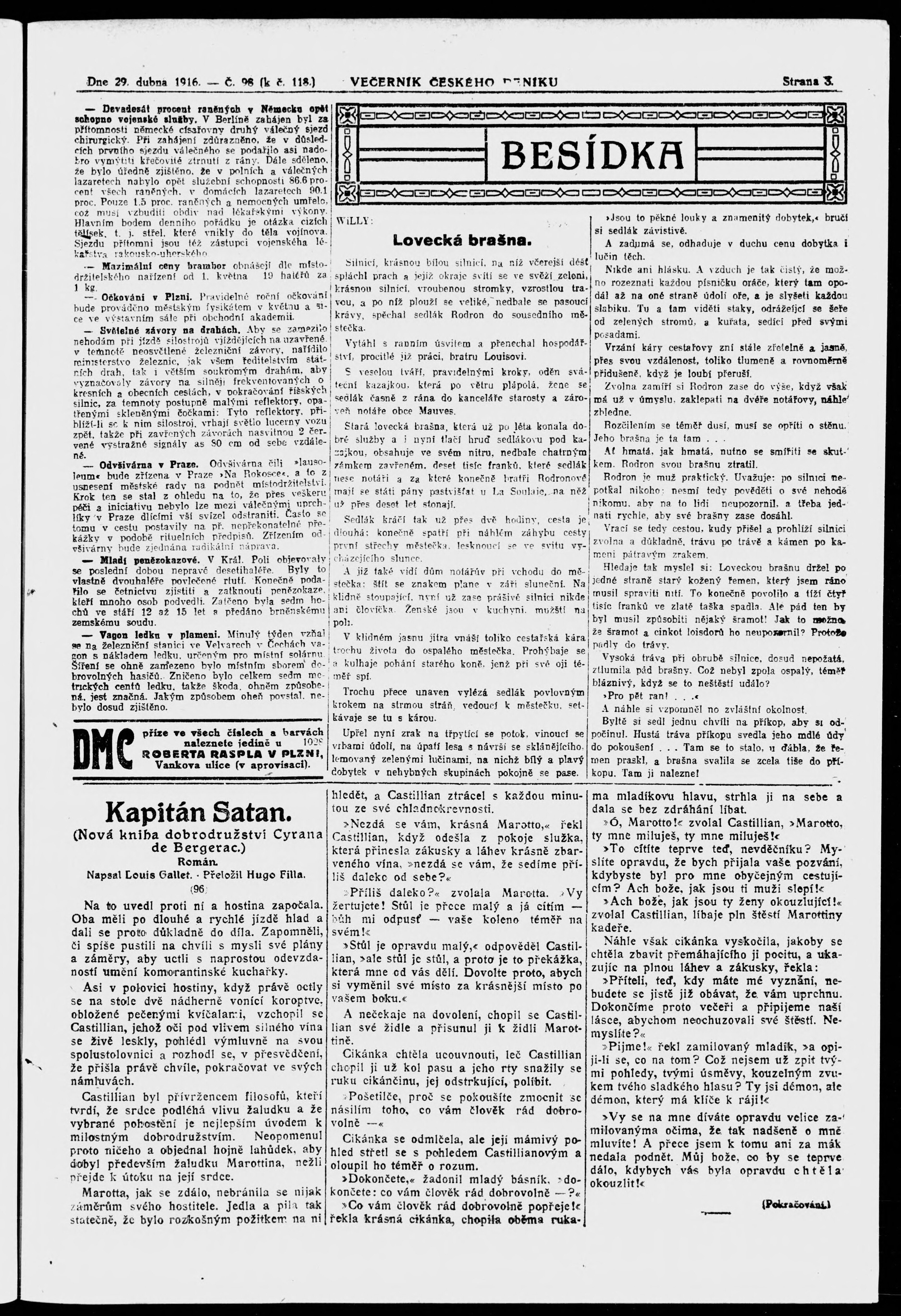 * Datum vydání výtisku: 29.4.1916 Číslo výtisku: 98 Poznámky k výtisku: večerní vydání;