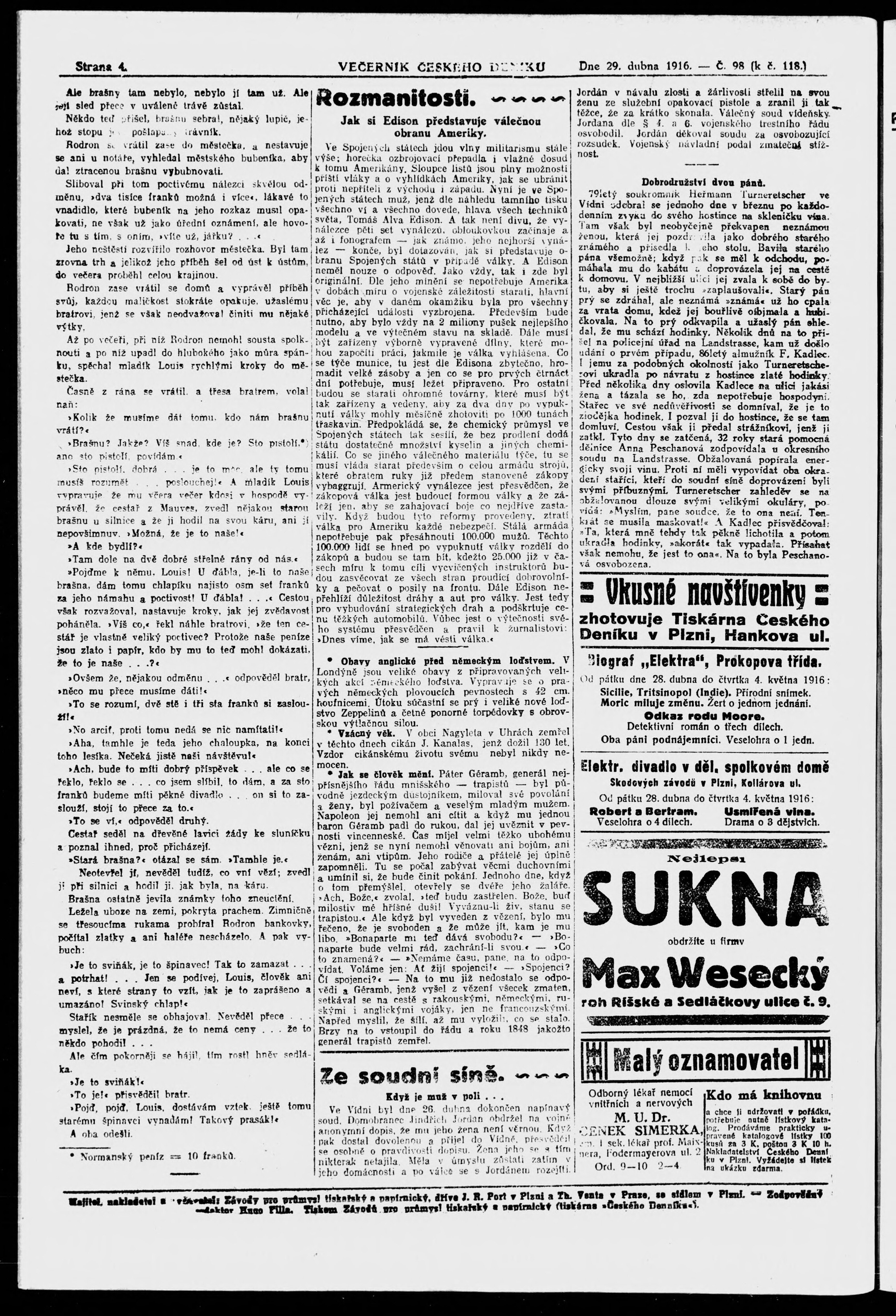 večerní vydání;