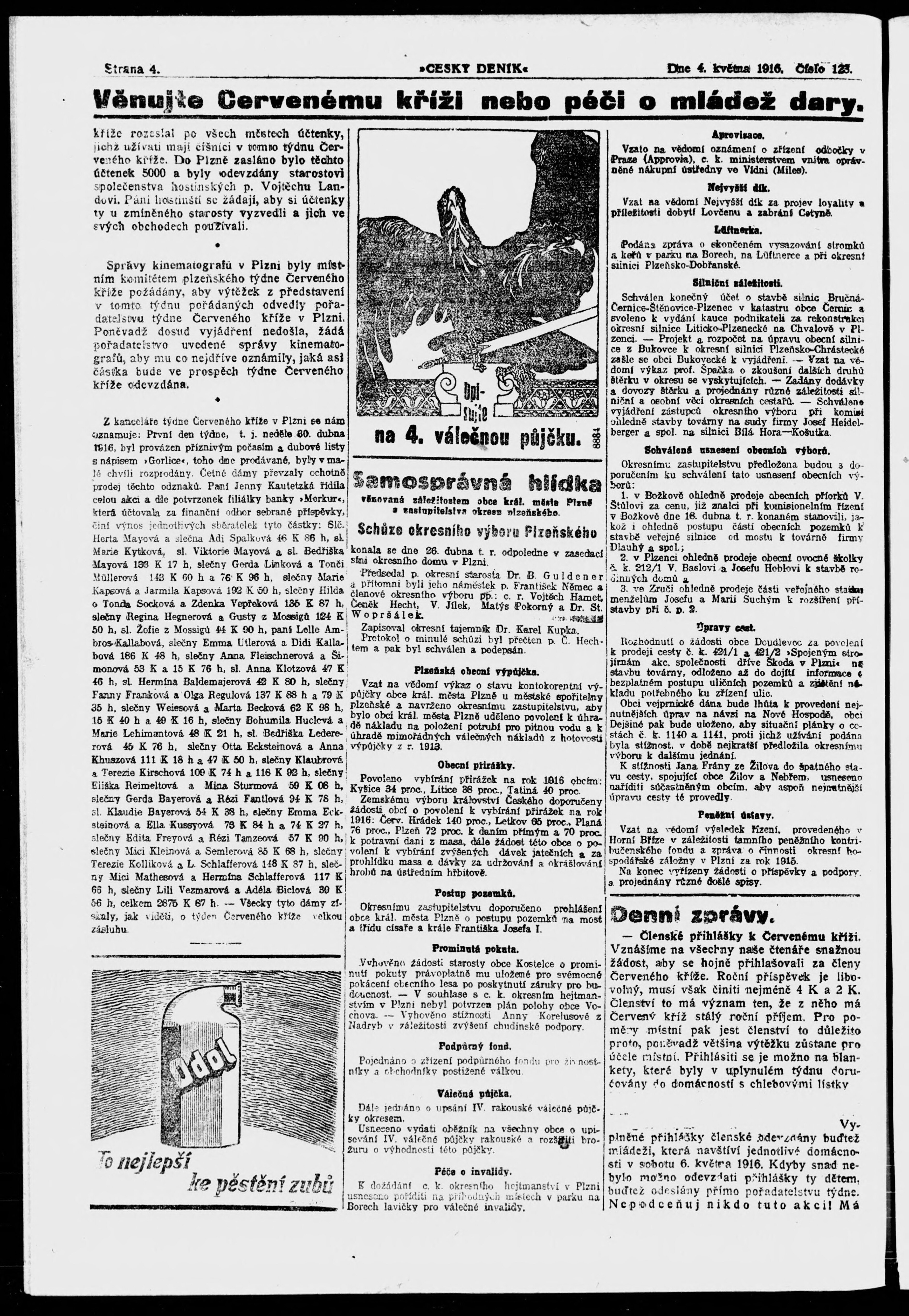 * Datum vydání výtisku: 4.5.1916 Číslo výtisku: 123