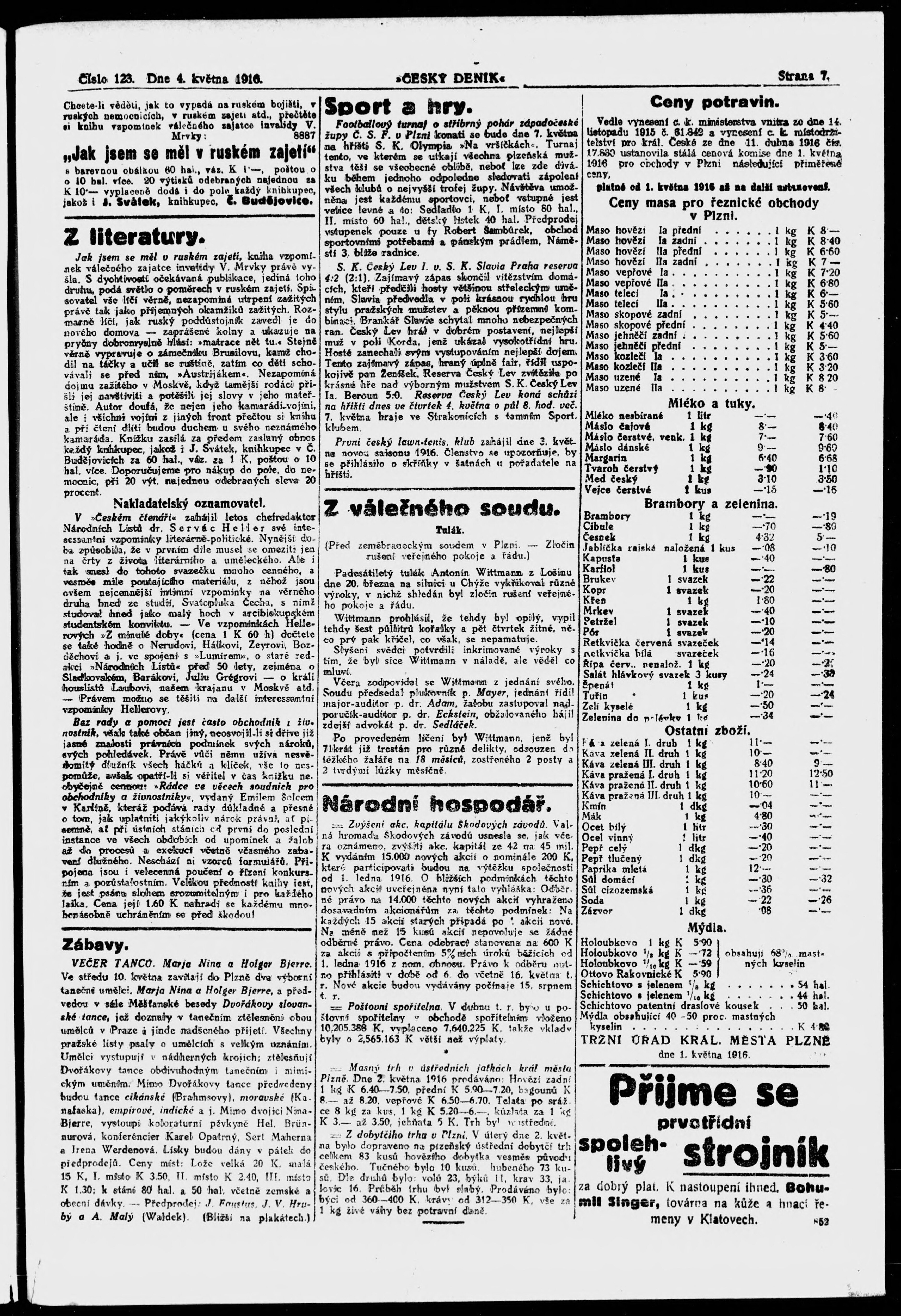 * Datum vydání výtisku: 4.5.1916 Číslo výtisku: 123