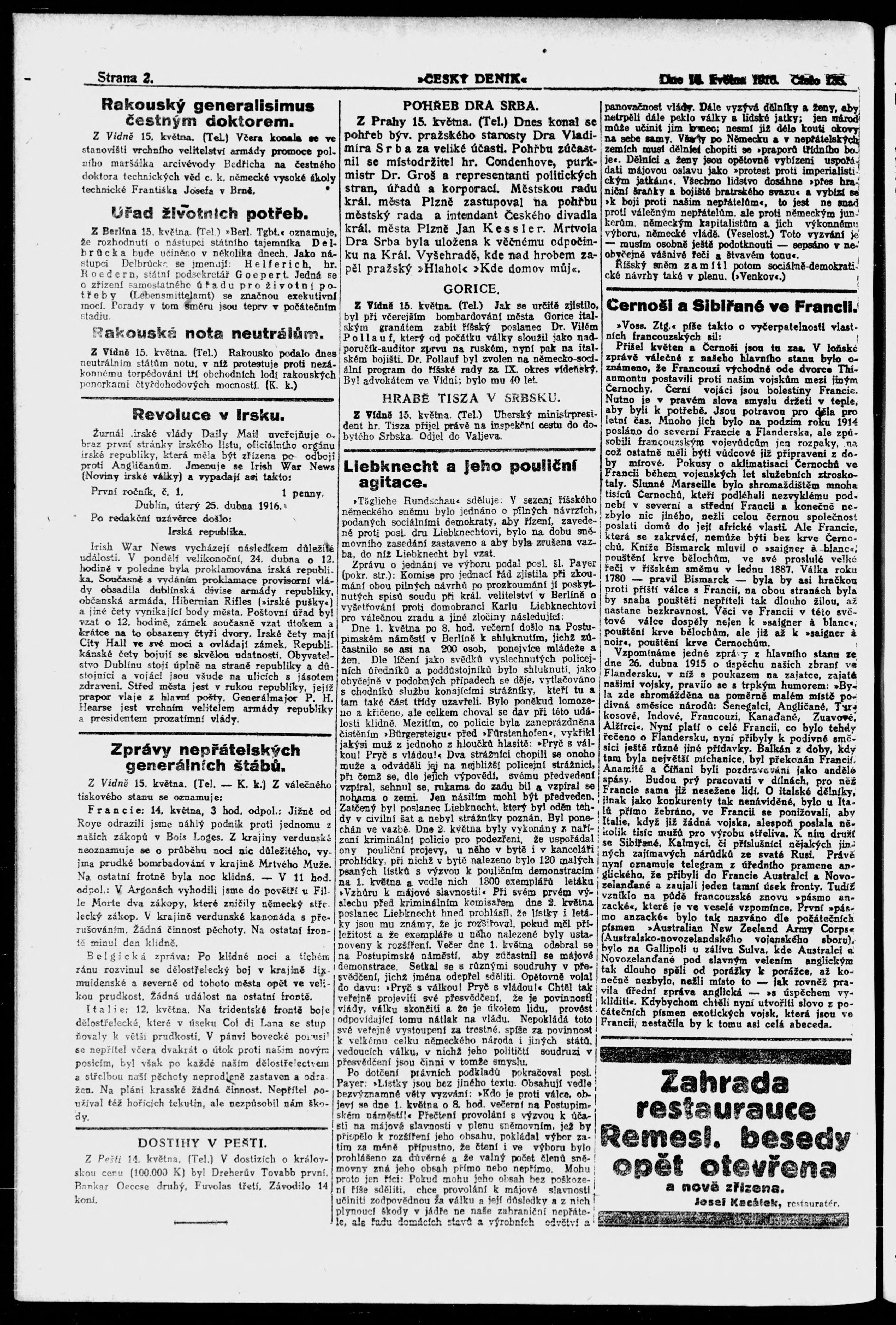 * Datum vydání výtisku: 16.5.1916 Číslo výtisku: 135