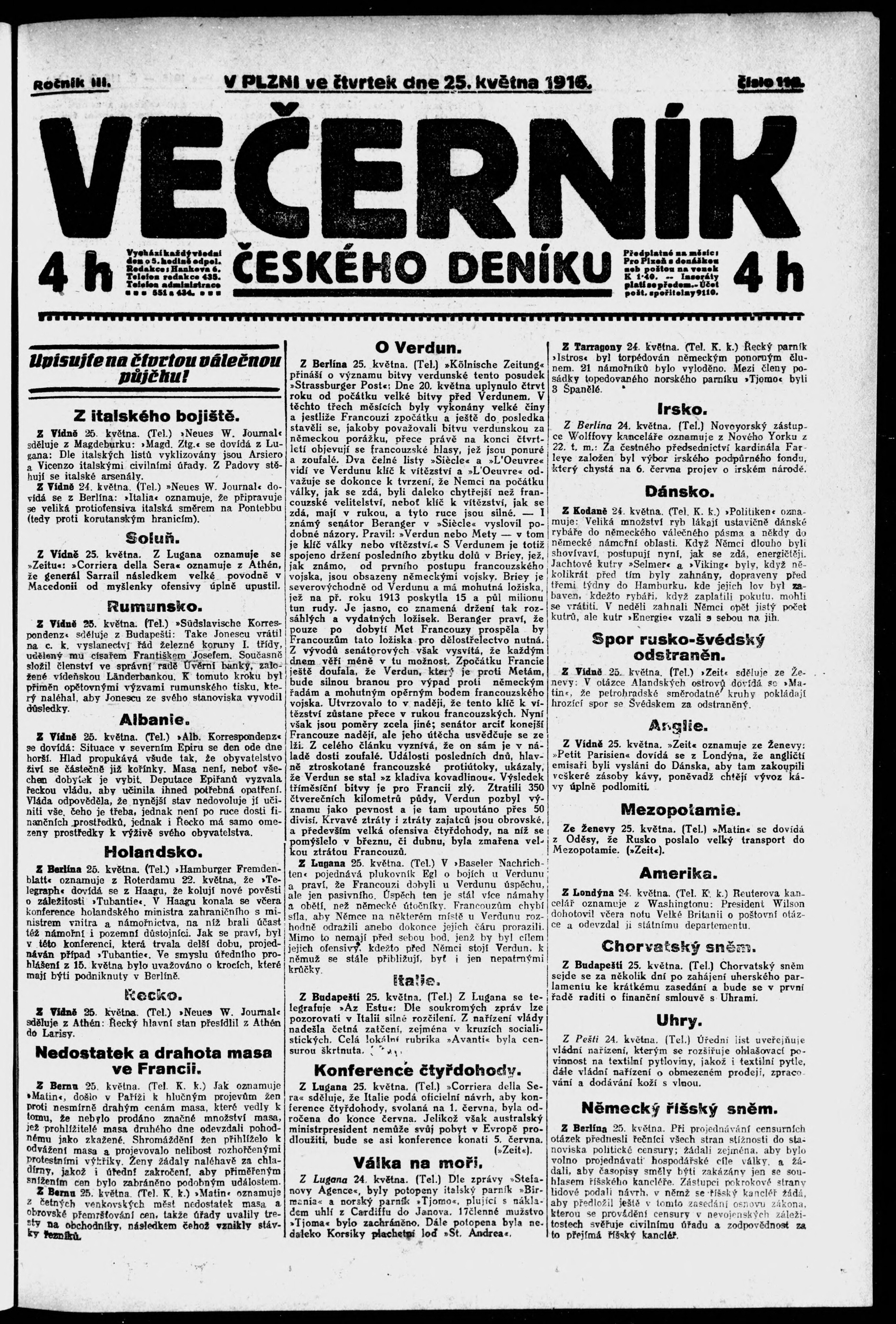 * Datum vydání výtisku: 25.5.1916 Číslo výtisku: 119 Poznámky k výtisku: večerní vydání;