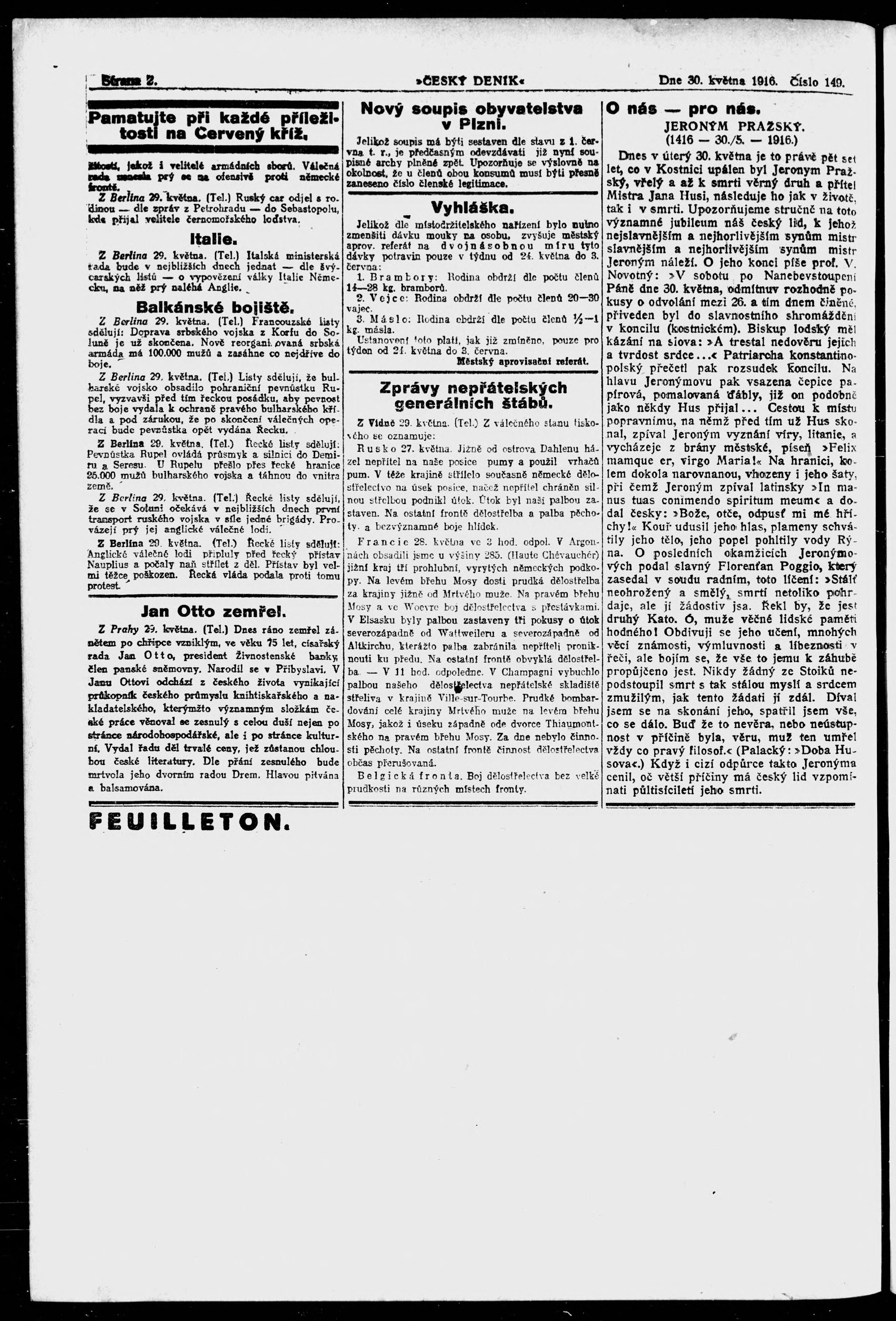 * Datum vydání výtisku: 30.5.1916 Číslo výtisku: 149