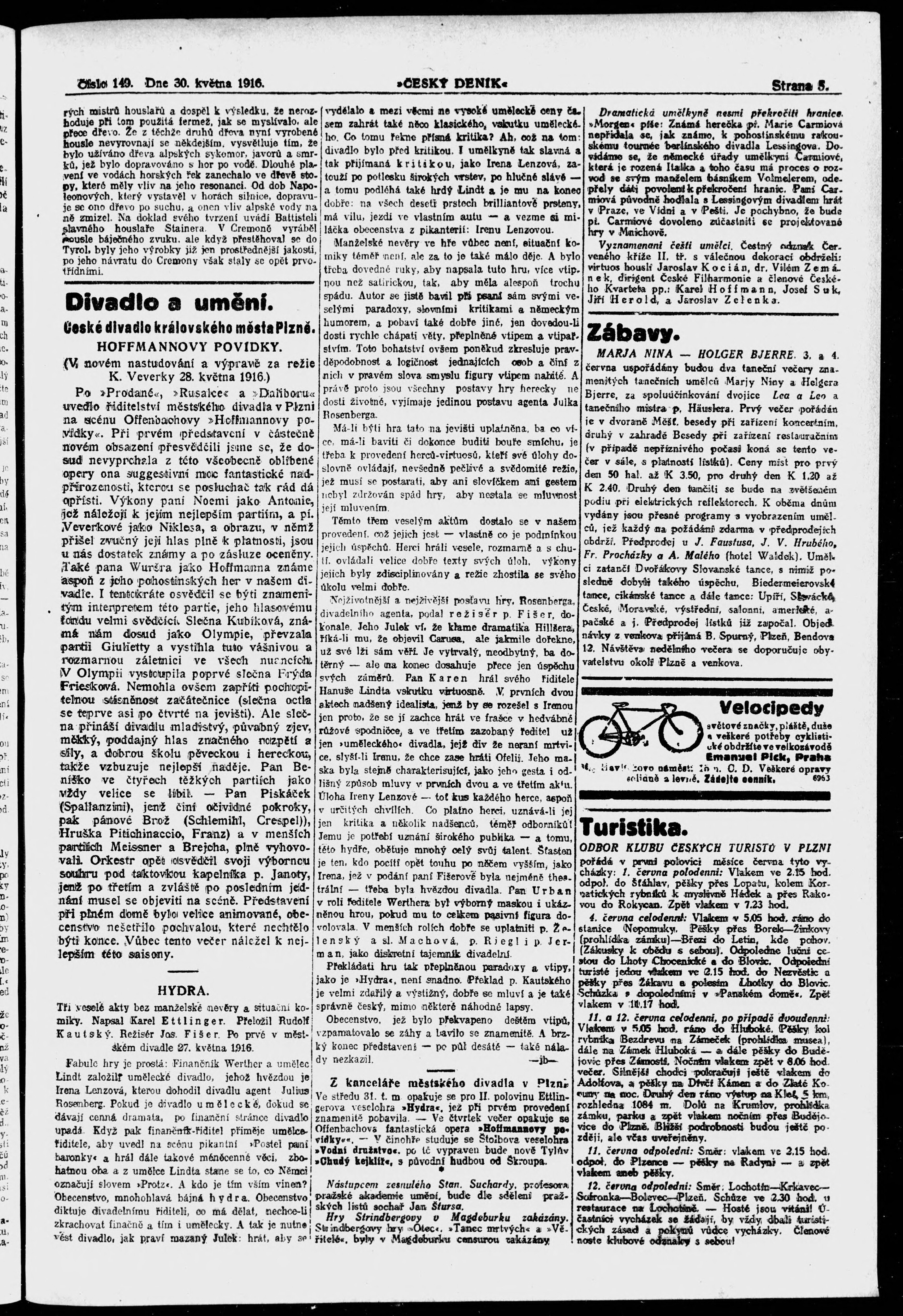 * Datum vydání výtisku: 30.5.1916 Číslo výtisku: 149