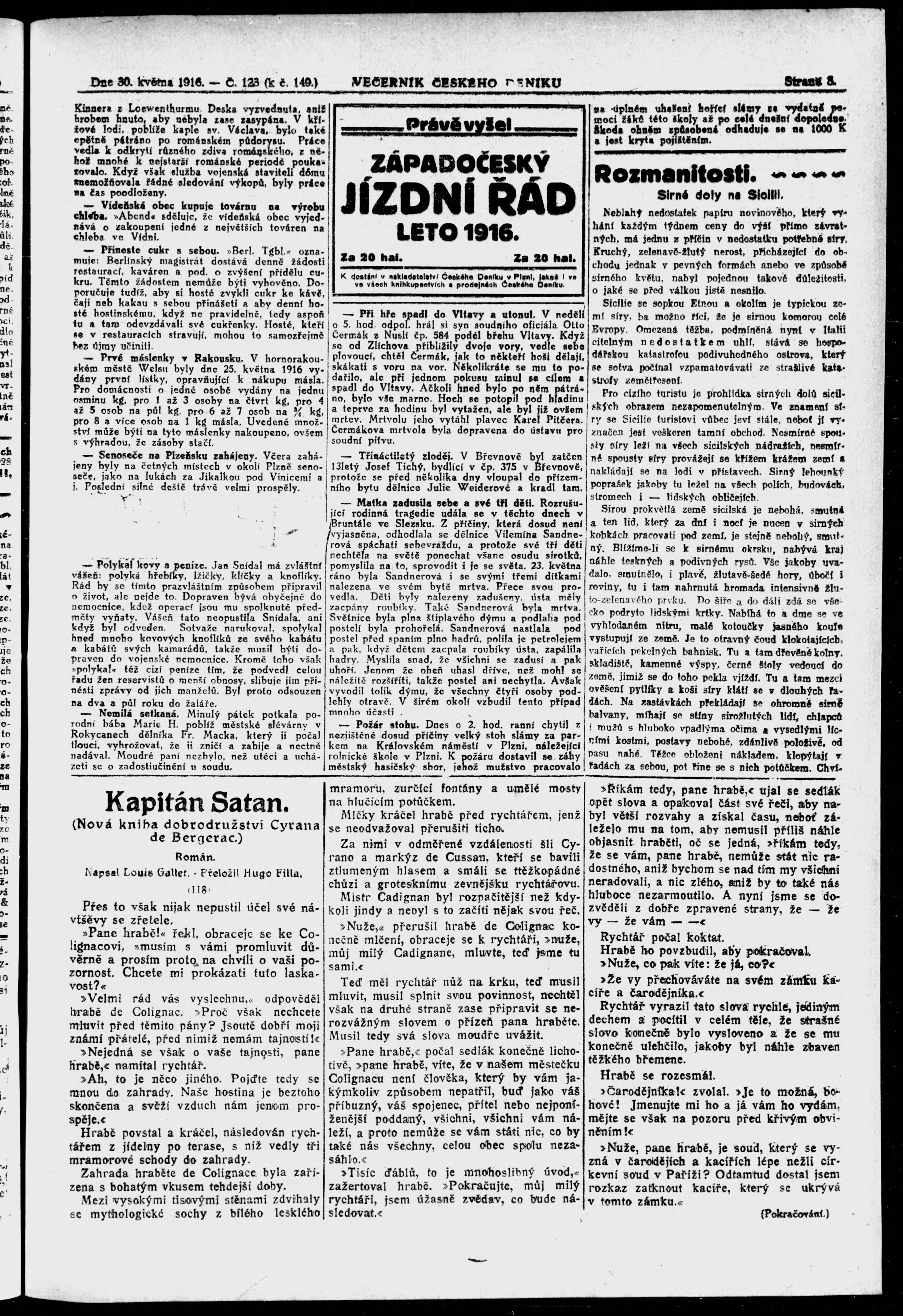 * Datum vydání výtisku: 30.5.1916 Číslo výtisku: 123 Poznámky k výtisku: večerní vydání;