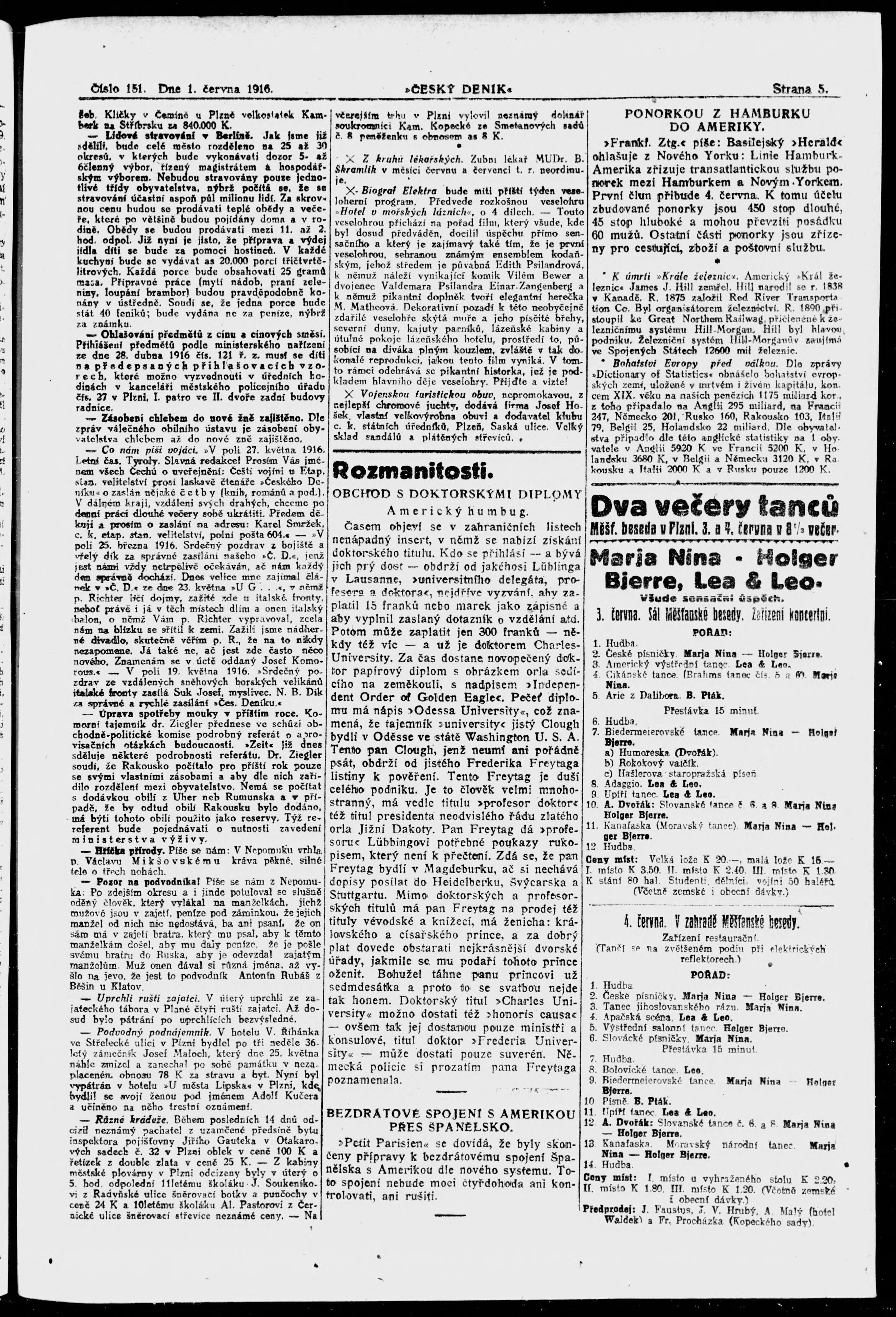 * Datum vydání výtisku: 1.6.1916 Číslo výtisku: 151