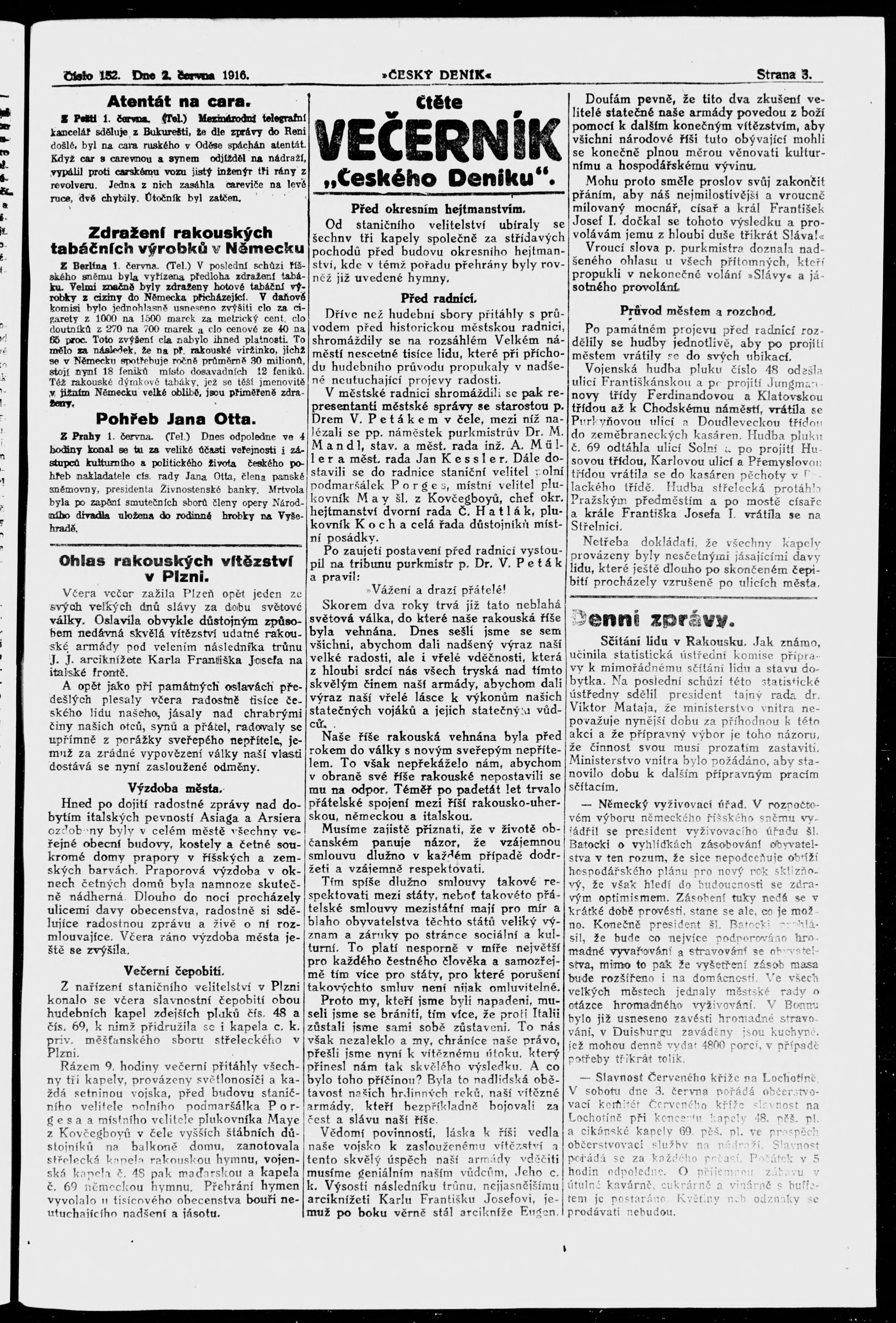 * Datum vydání výtisku: 2.6.1916 Číslo výtisku: 152