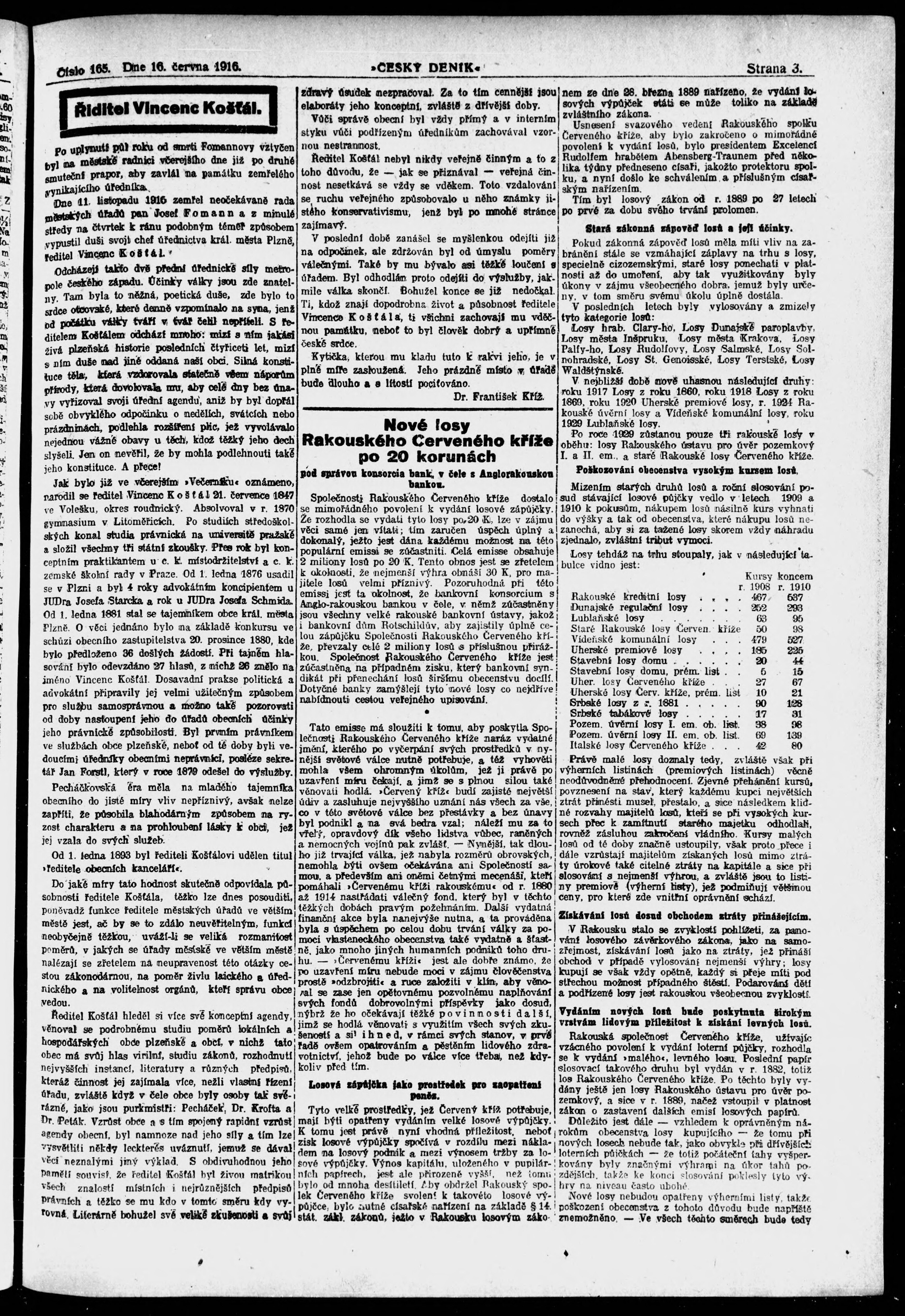 * Datum vydání výtisku: 16.6.1916 Číslo výtisku: 165