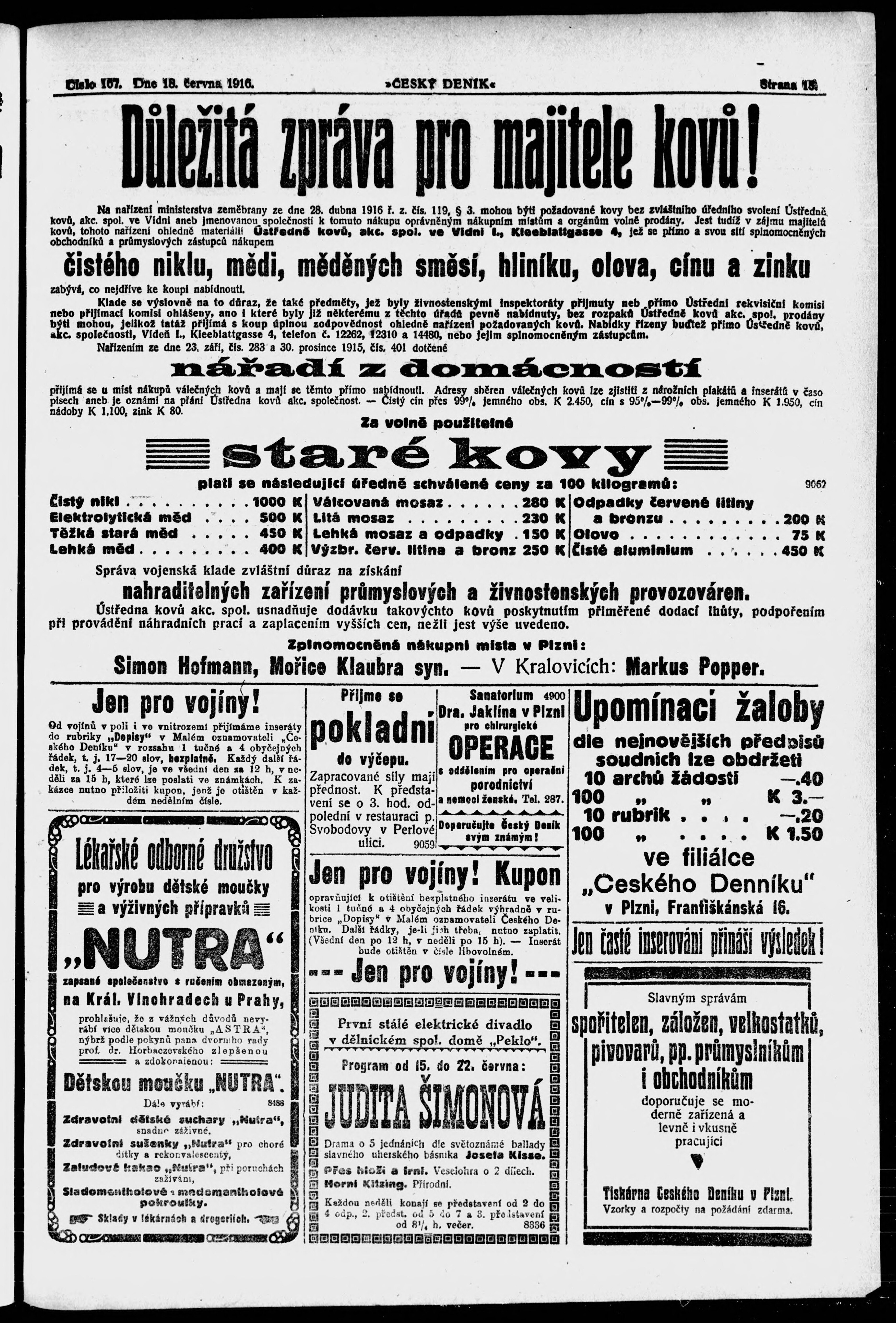* Datum vydání výtisku: 18.6.1916 Číslo výtisku: 167