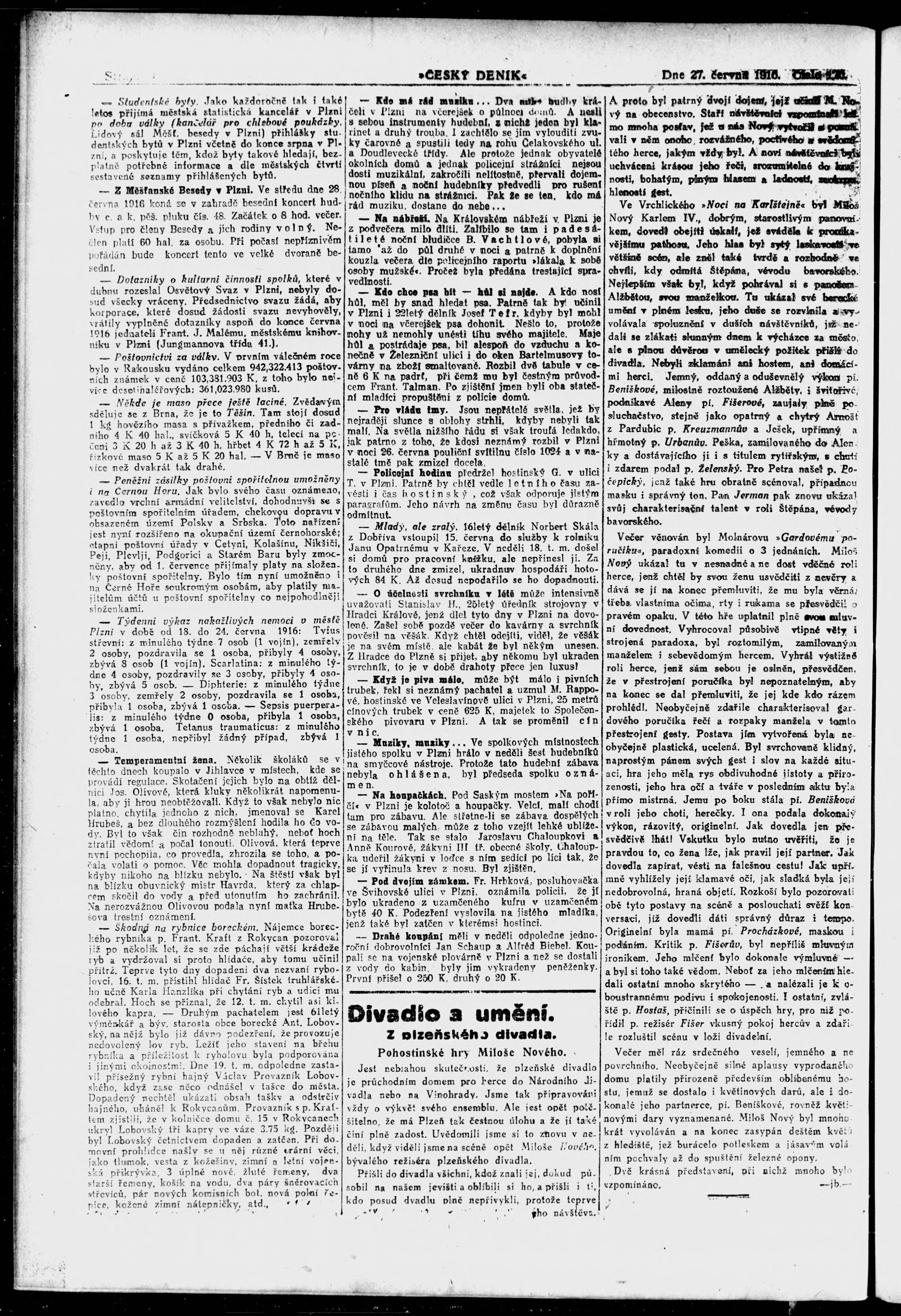 * Datum vydání výtisku: 27.6.1916 Číslo výtisku: 176