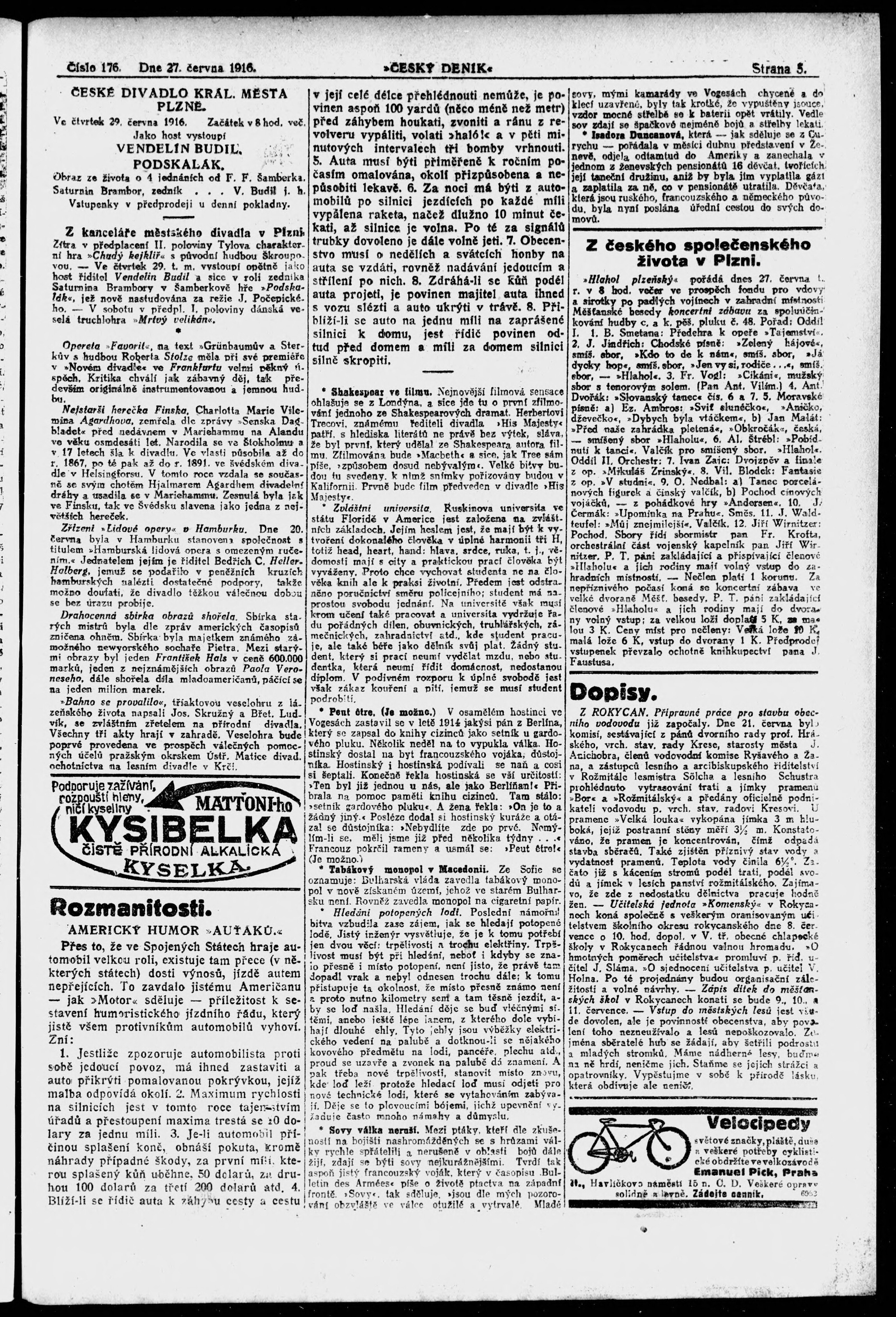 * Datum vydání výtisku: 27.6.1916 Číslo výtisku: 176
