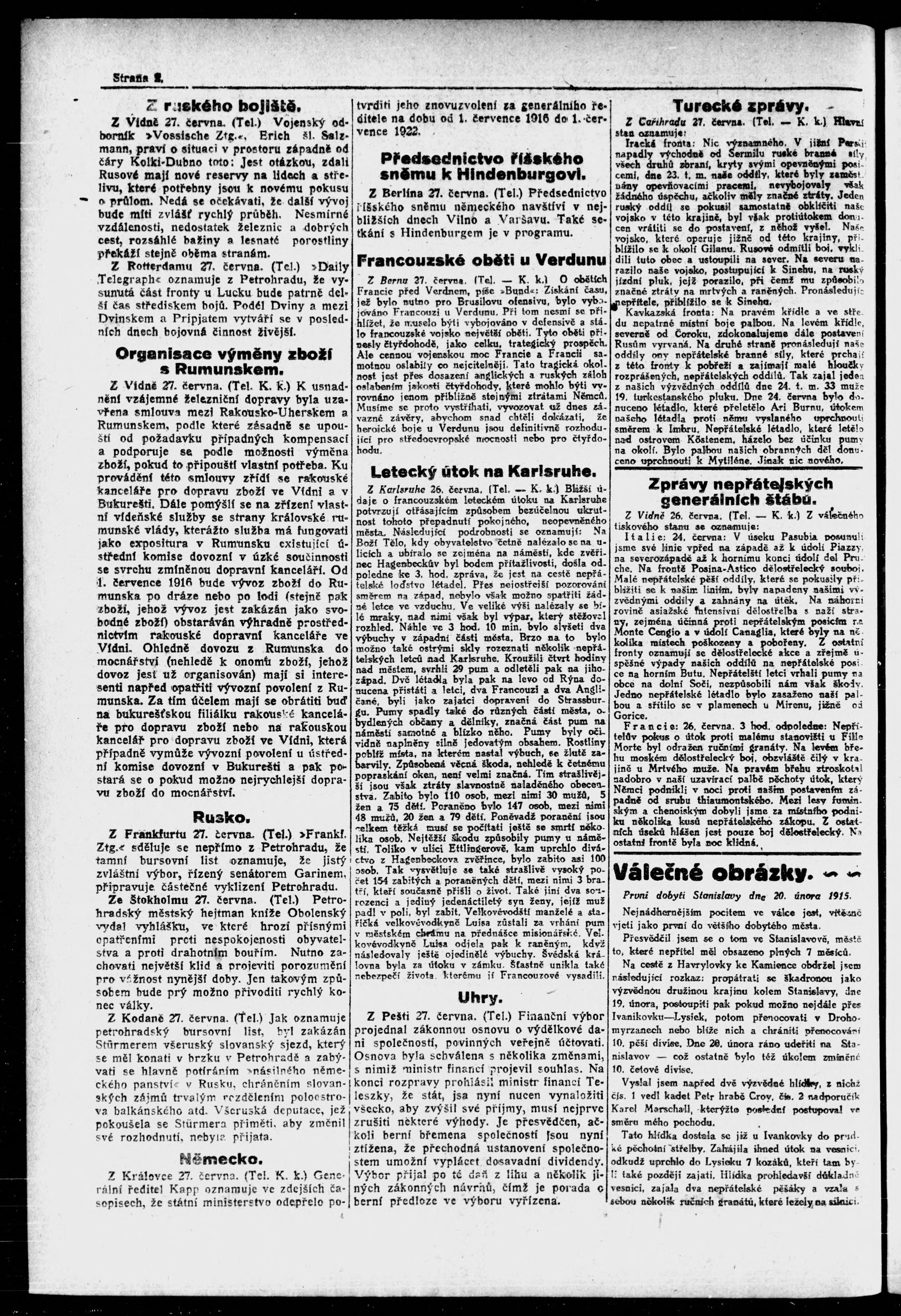 * Datum vydání výtisku: 27.6.1916 Číslo výtisku: 144 Poznámky k výtisku: večerní vydání;