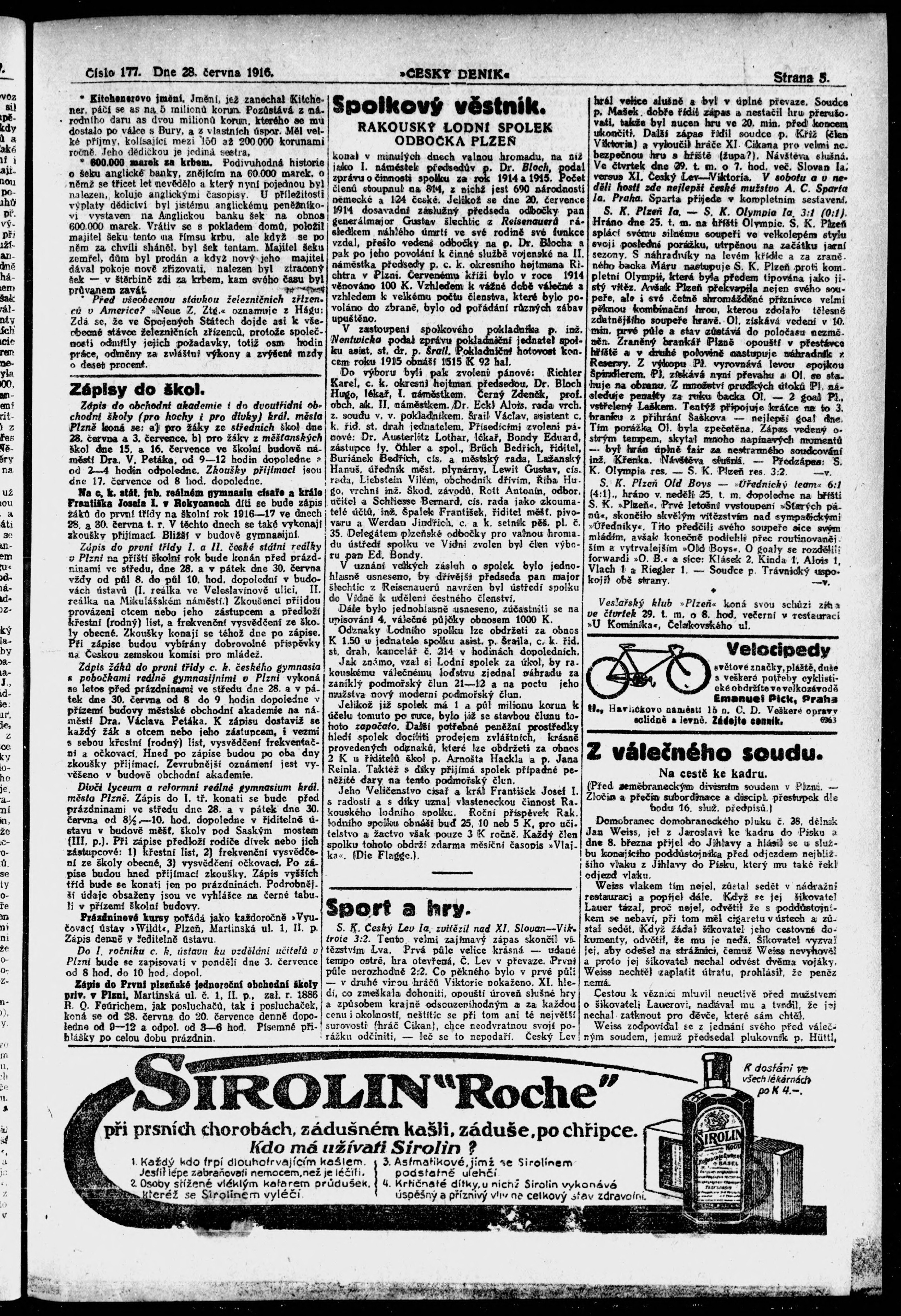 * Datum vydání výtisku: 28.6.1916 Číslo výtisku: 177