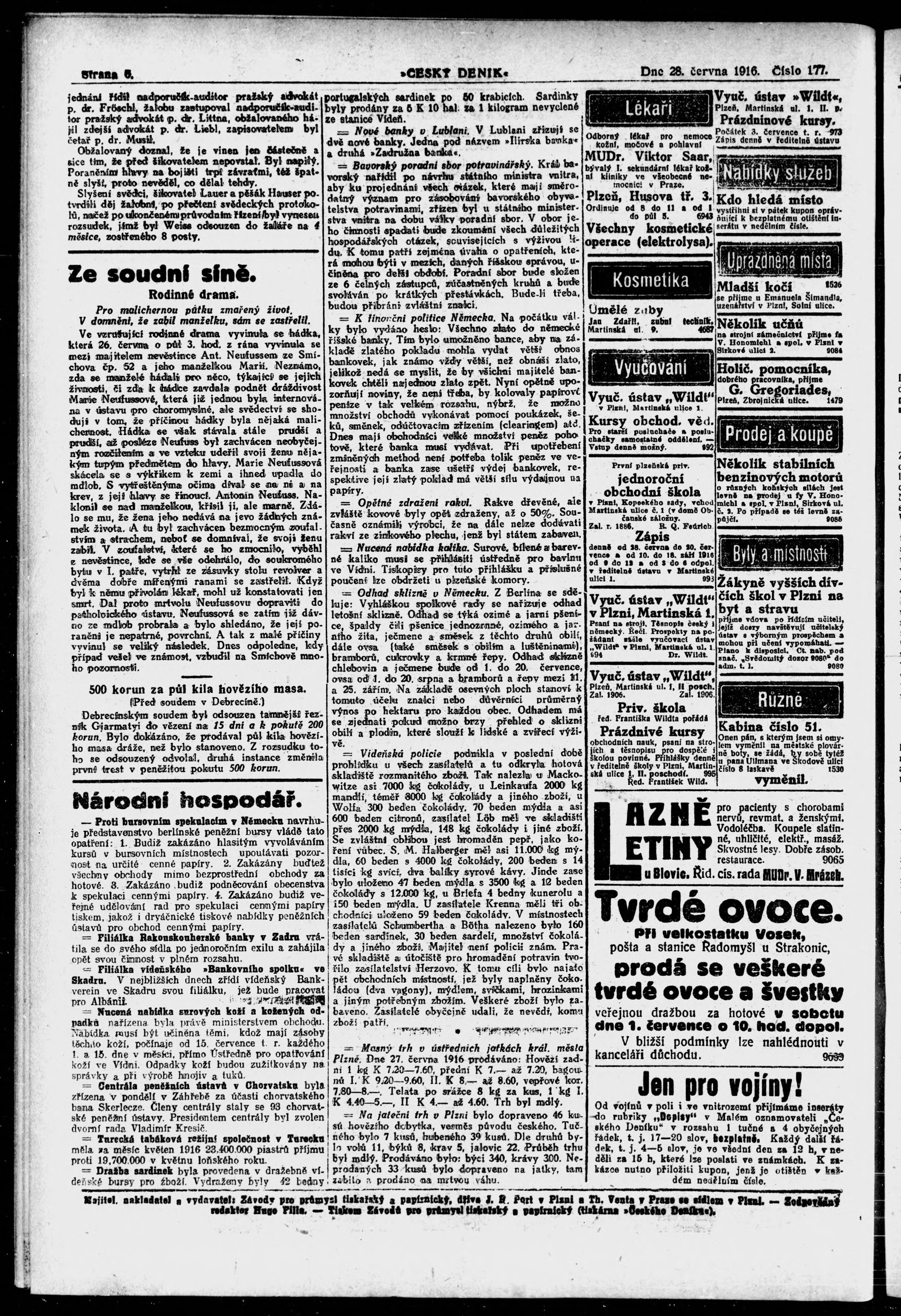 * Datum vydání výtisku: 28.6.1916 Číslo výtisku: 177