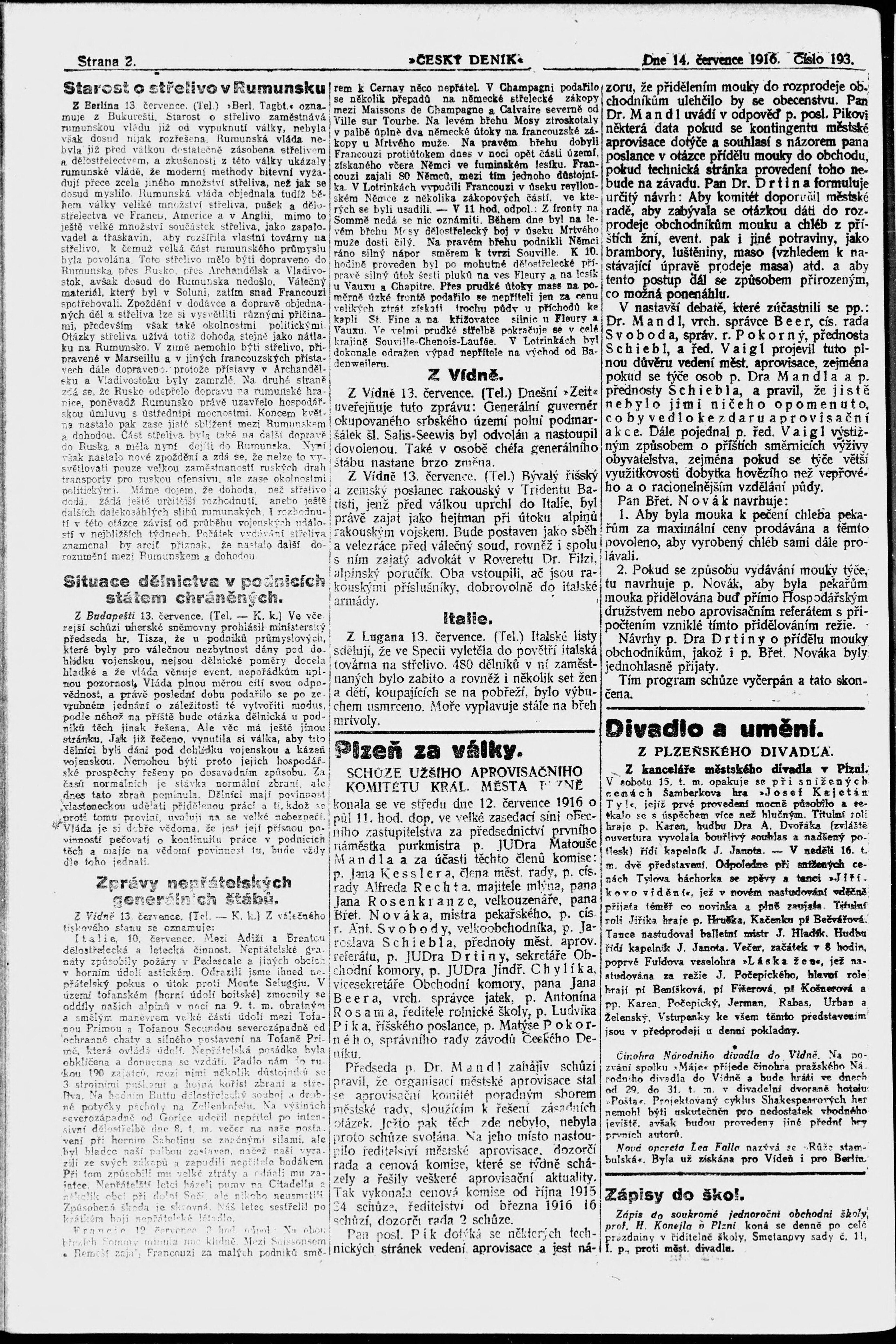 * Datum vydání výtisku: 14.7.1916 Číslo výtisku: 193
