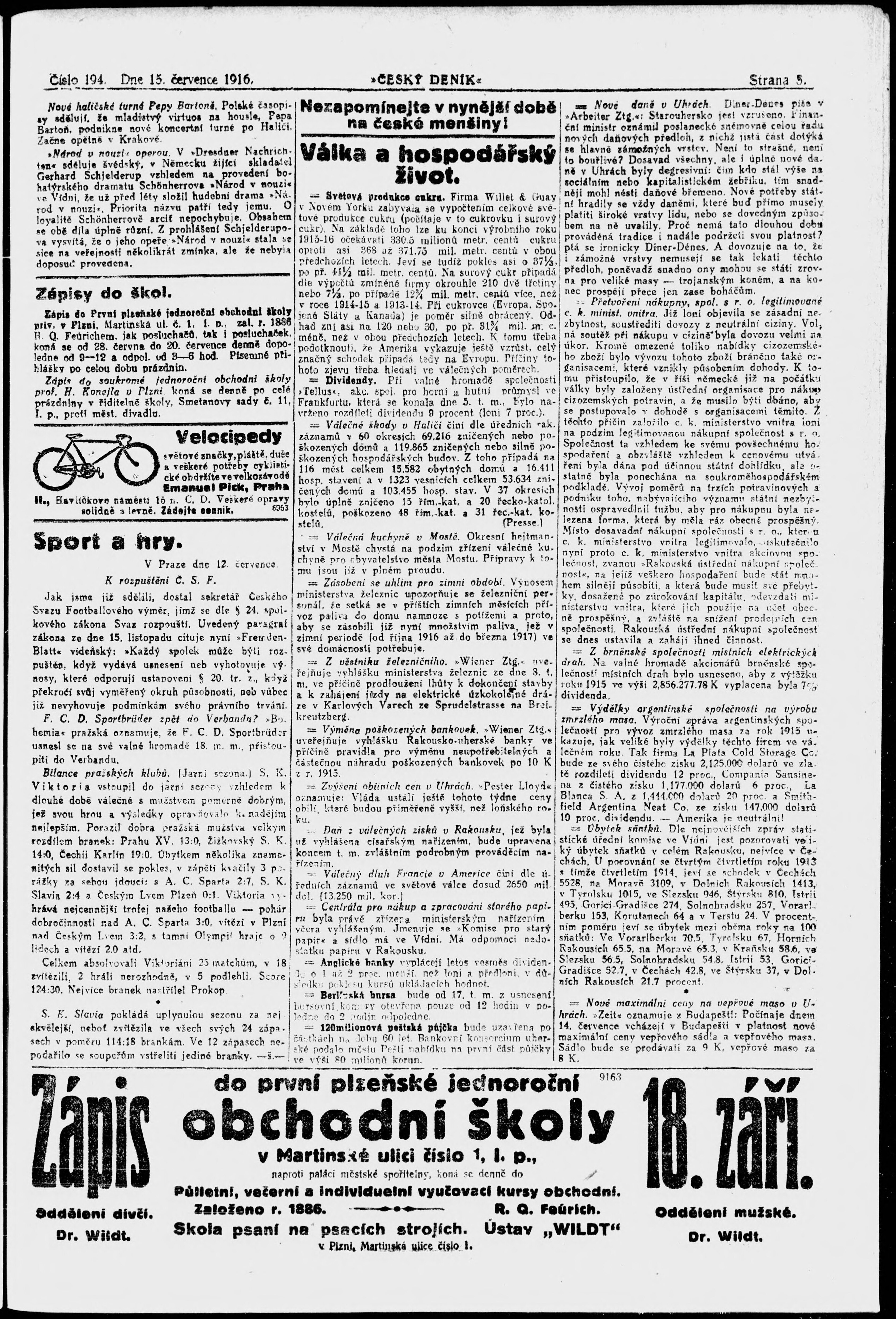 * Datum vydání výtisku: 15.7.1916 Číslo výtisku: 194