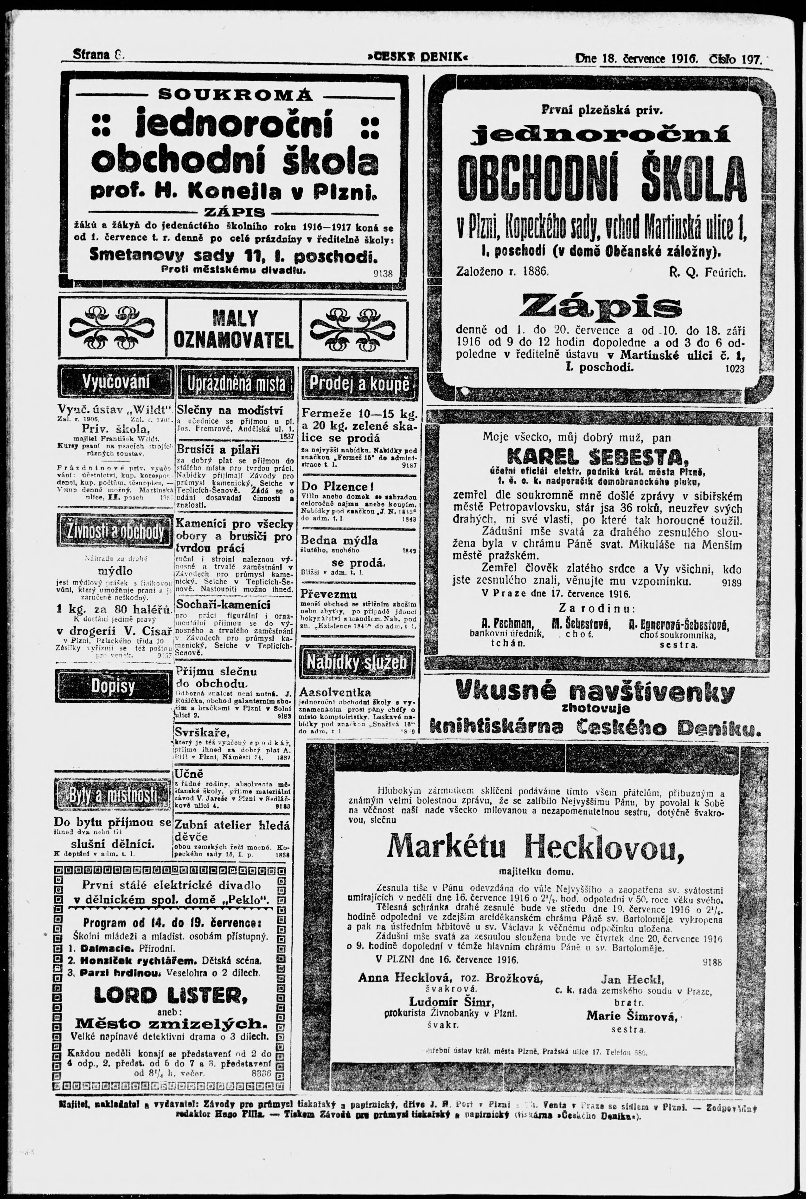 * Datum vydání výtisku: 18.7.1916 Číslo výtisku: 197