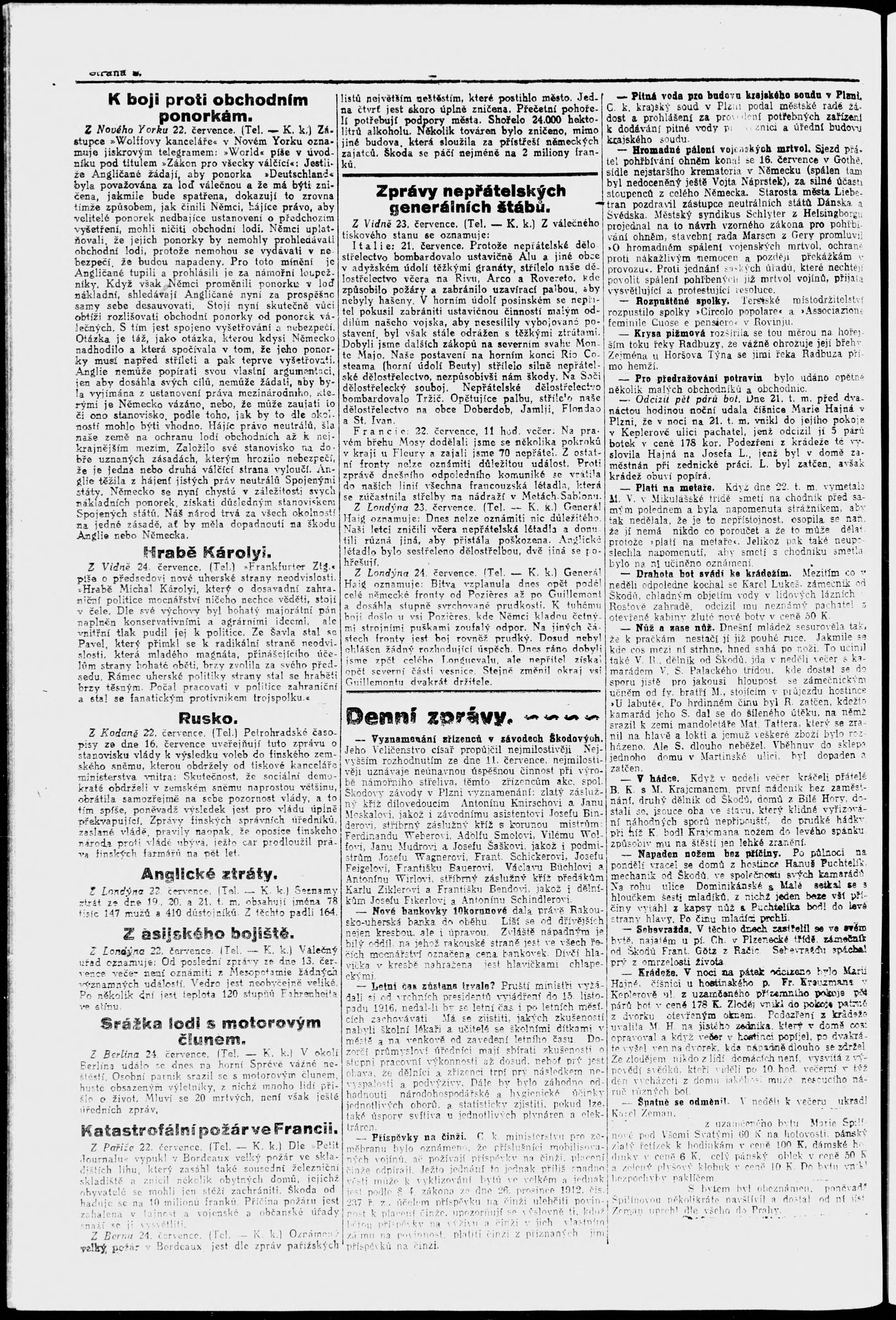 * Datum vydání výtisku: 24.7.1916 Číslo výtisku: 166 Poznámky k výtisku: večerní vydání;