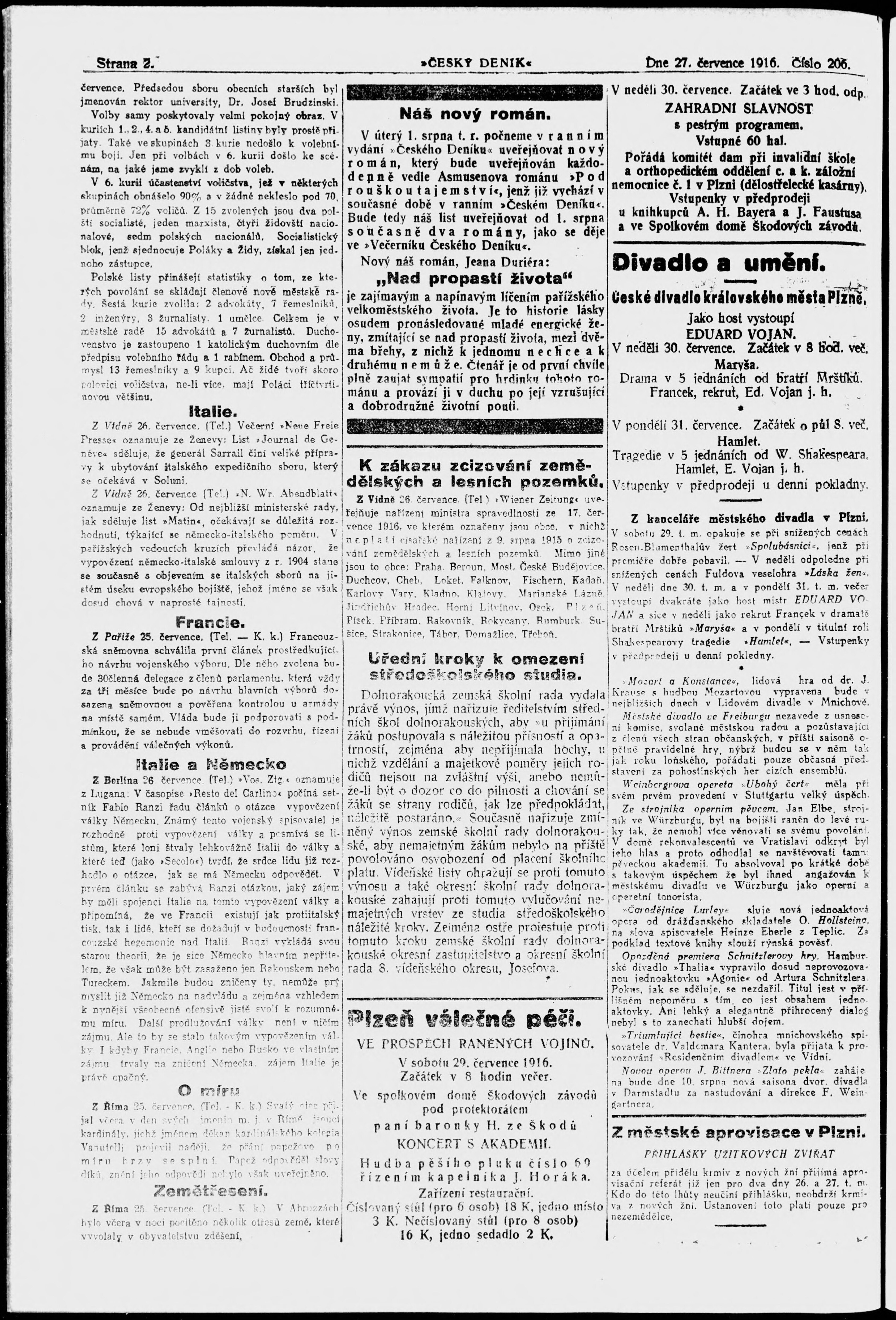 * Datum vydání výtisku: 27.7.1916 Číslo výtisku: 206