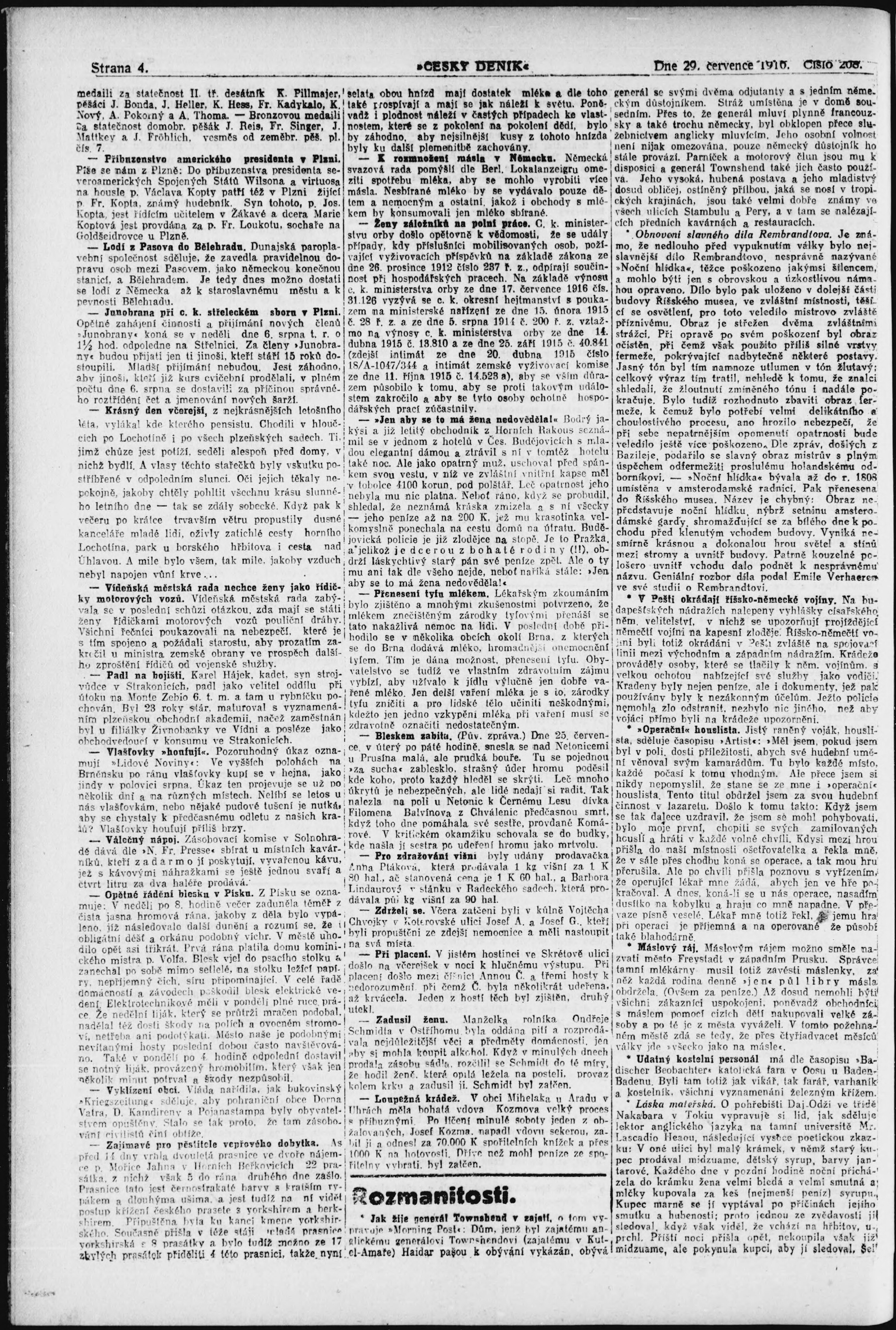 * Datum vydání výtisku: 29.7.1916 Číslo výtisku: 208
