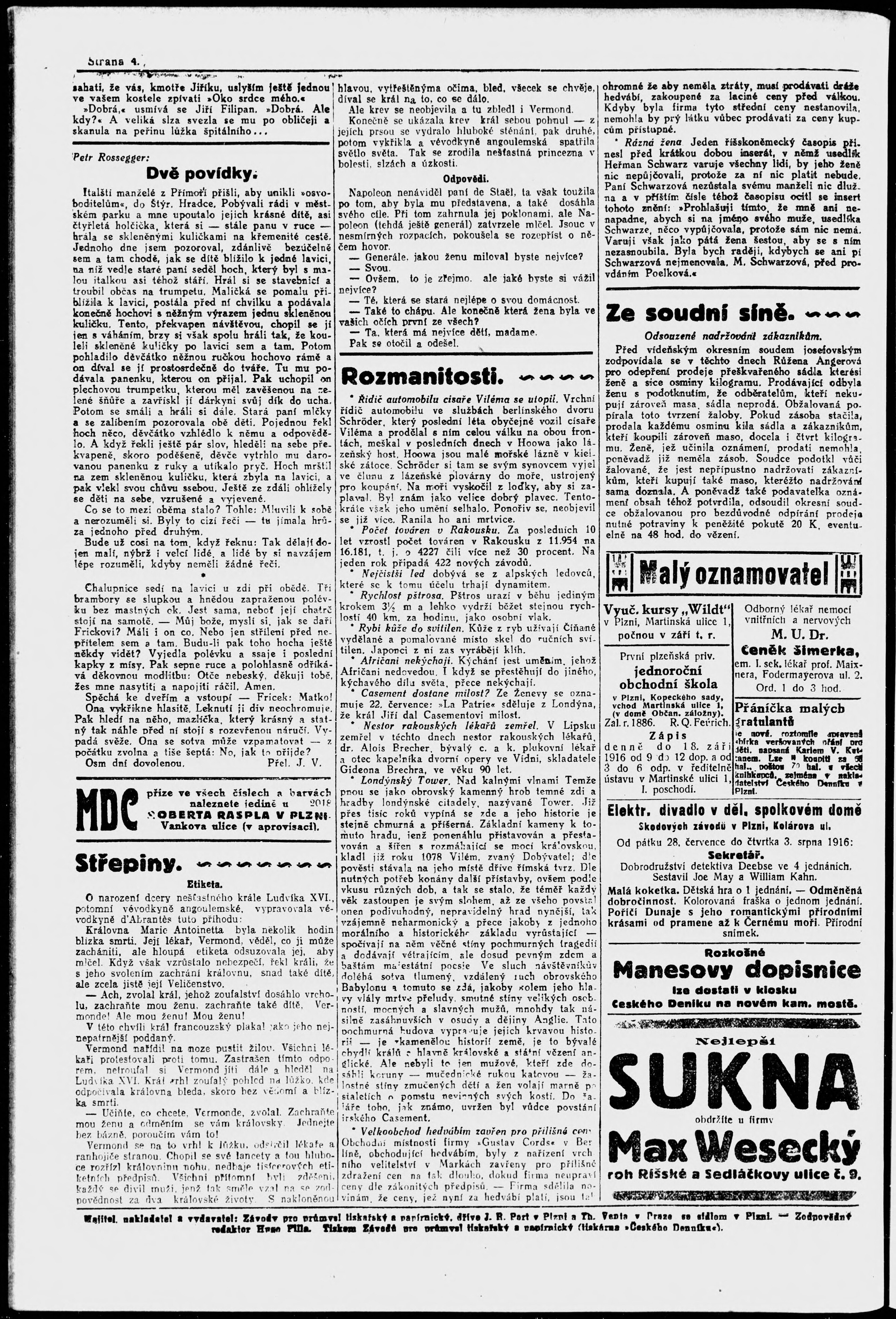 * Datum vydání výtisku: 29.7.1916 Číslo výtisku: 171 Poznámky k výtisku: večerní vydání;