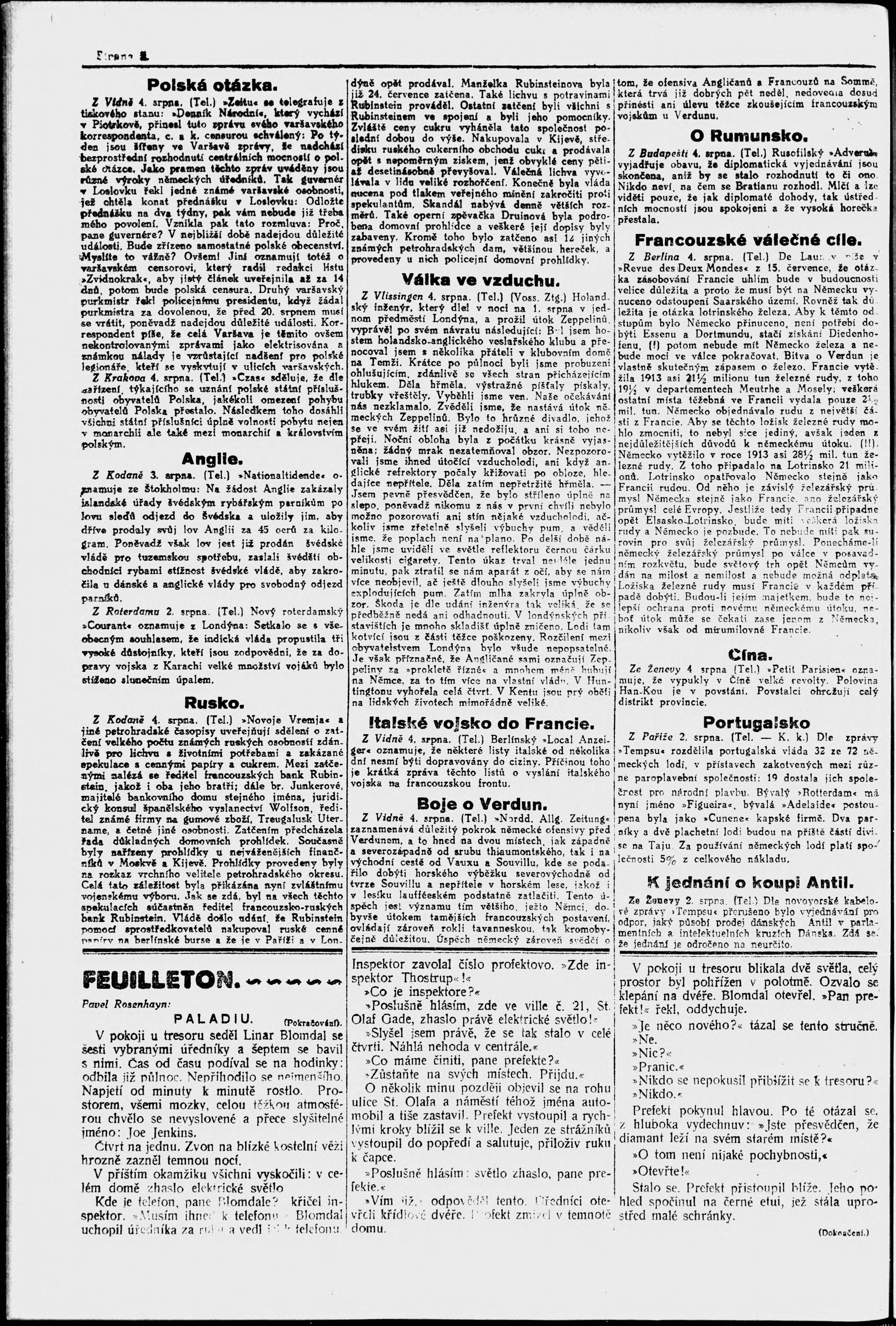 * Datum vydání výtisku: 4.8.1916 Číslo výtisku: 176 Poznámky k výtisku: večerní vydání;
