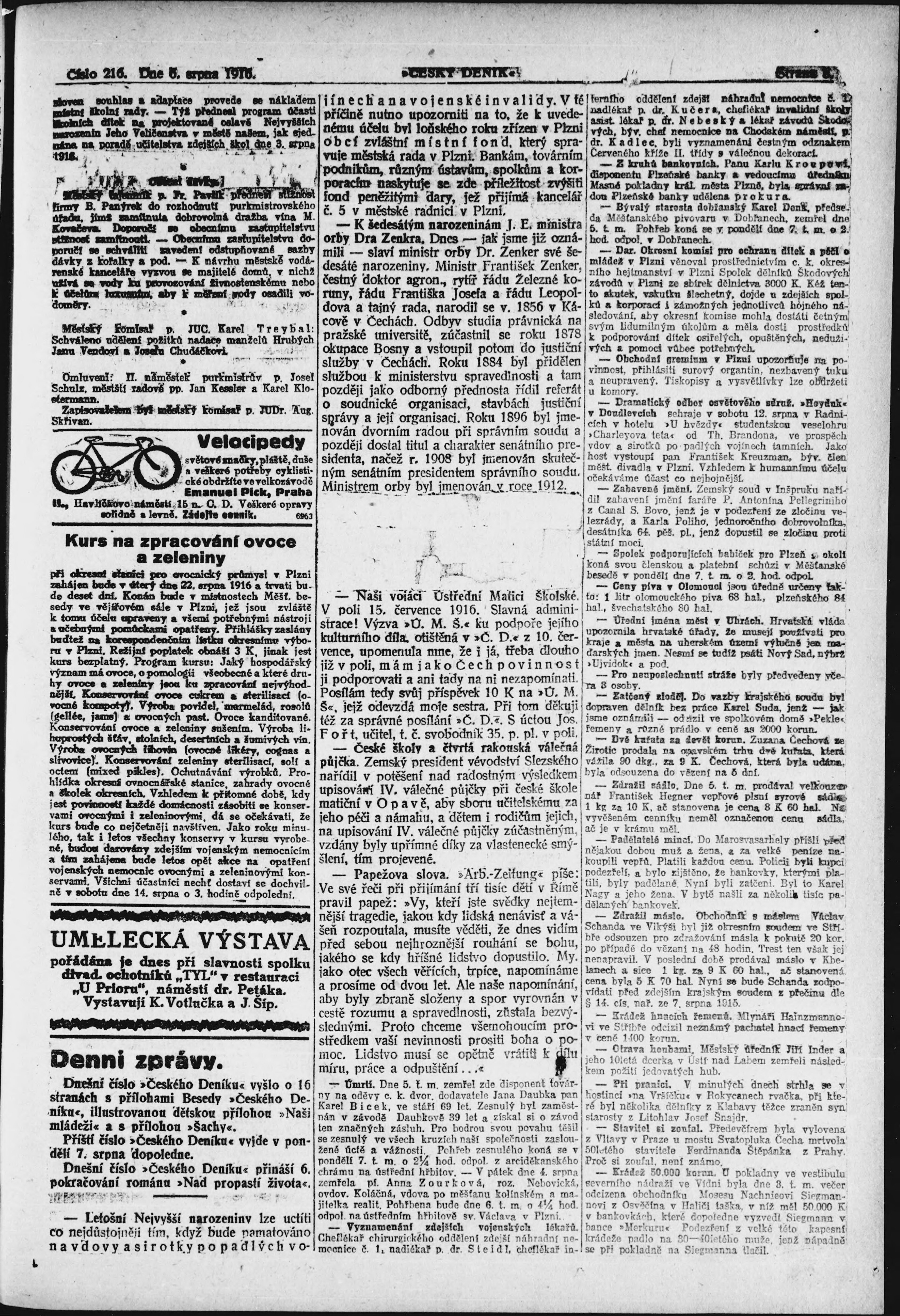 * Datum vydání výtisku: 6.8.1916 Číslo výtisku: 216
