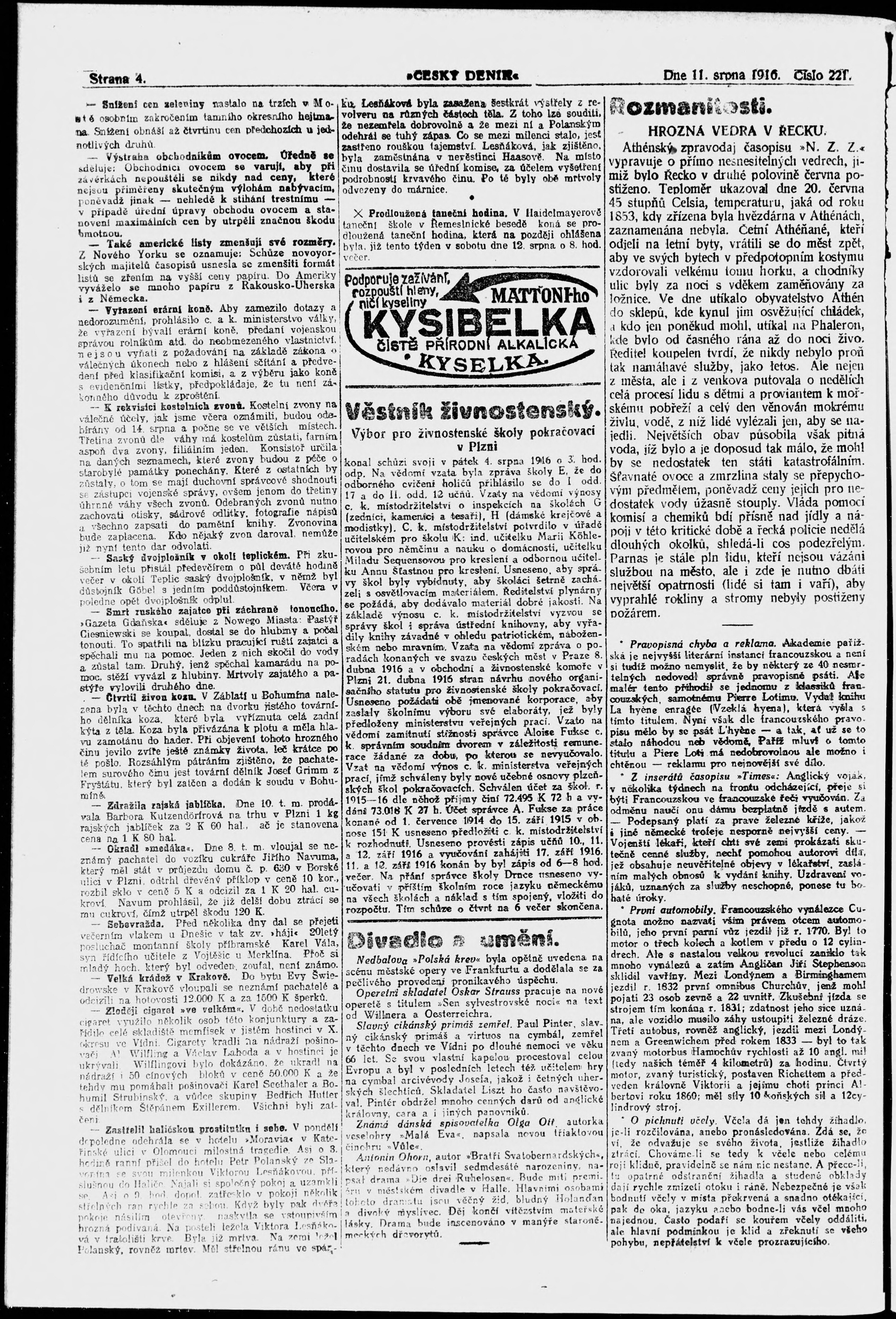 * Datum vydání výtisku: 11.8.1916 Číslo výtisku: 221