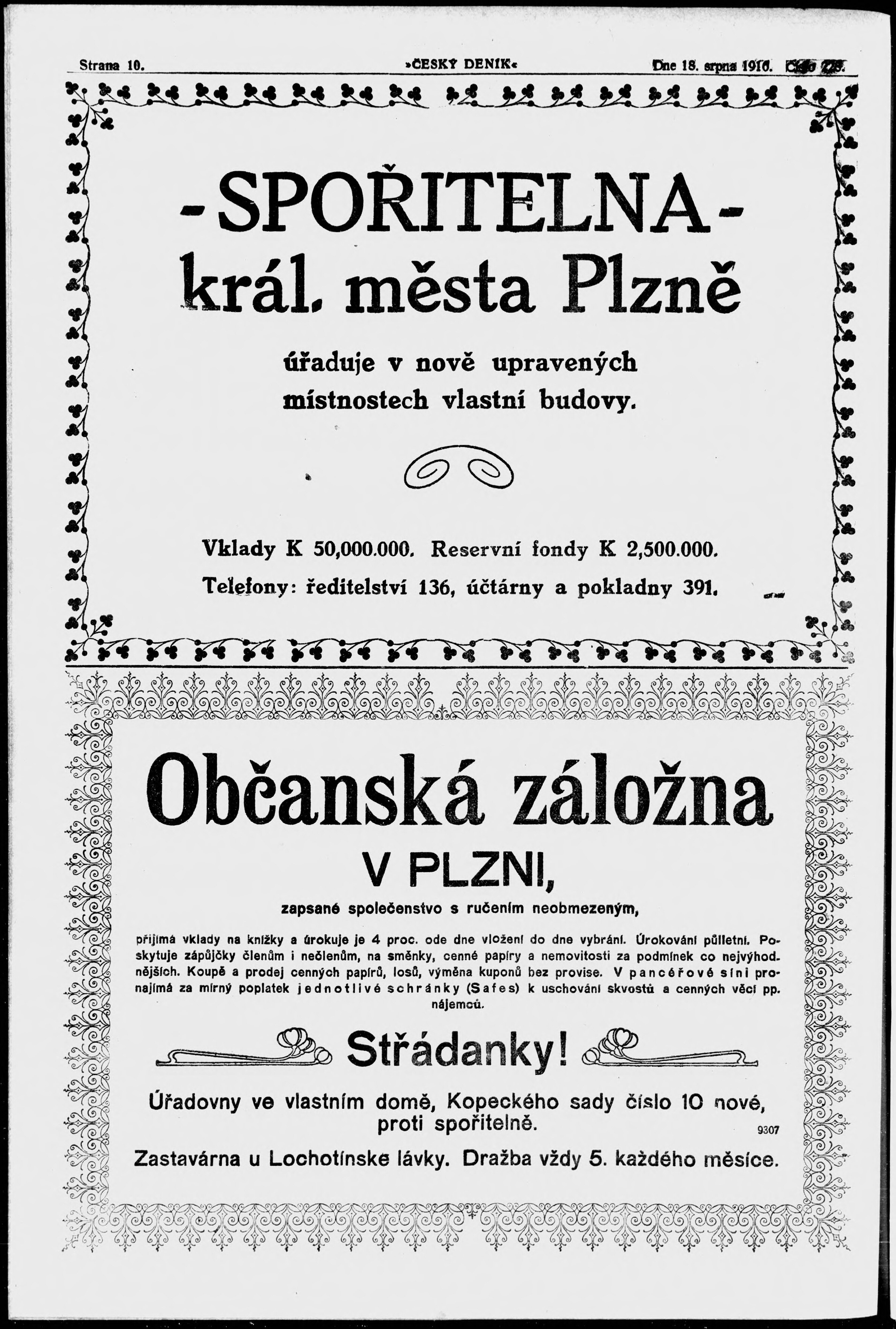 * Datum vydání výtisku: 18.8.1916 Číslo výtisku: 228