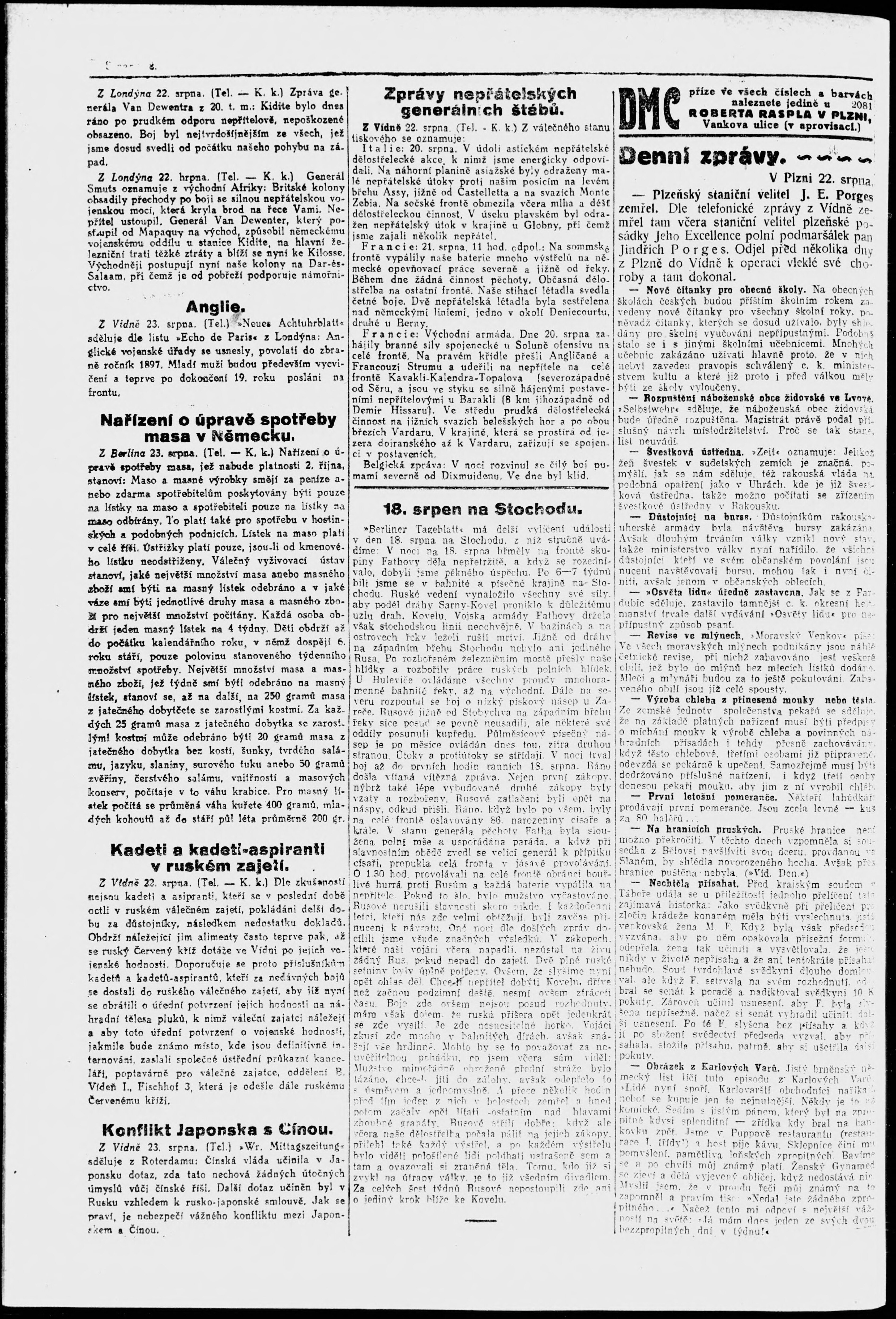 * Datum vydání výtisku: 23.8.1916 Číslo výtisku: 191 Poznámky k výtisku: večerní vydání;