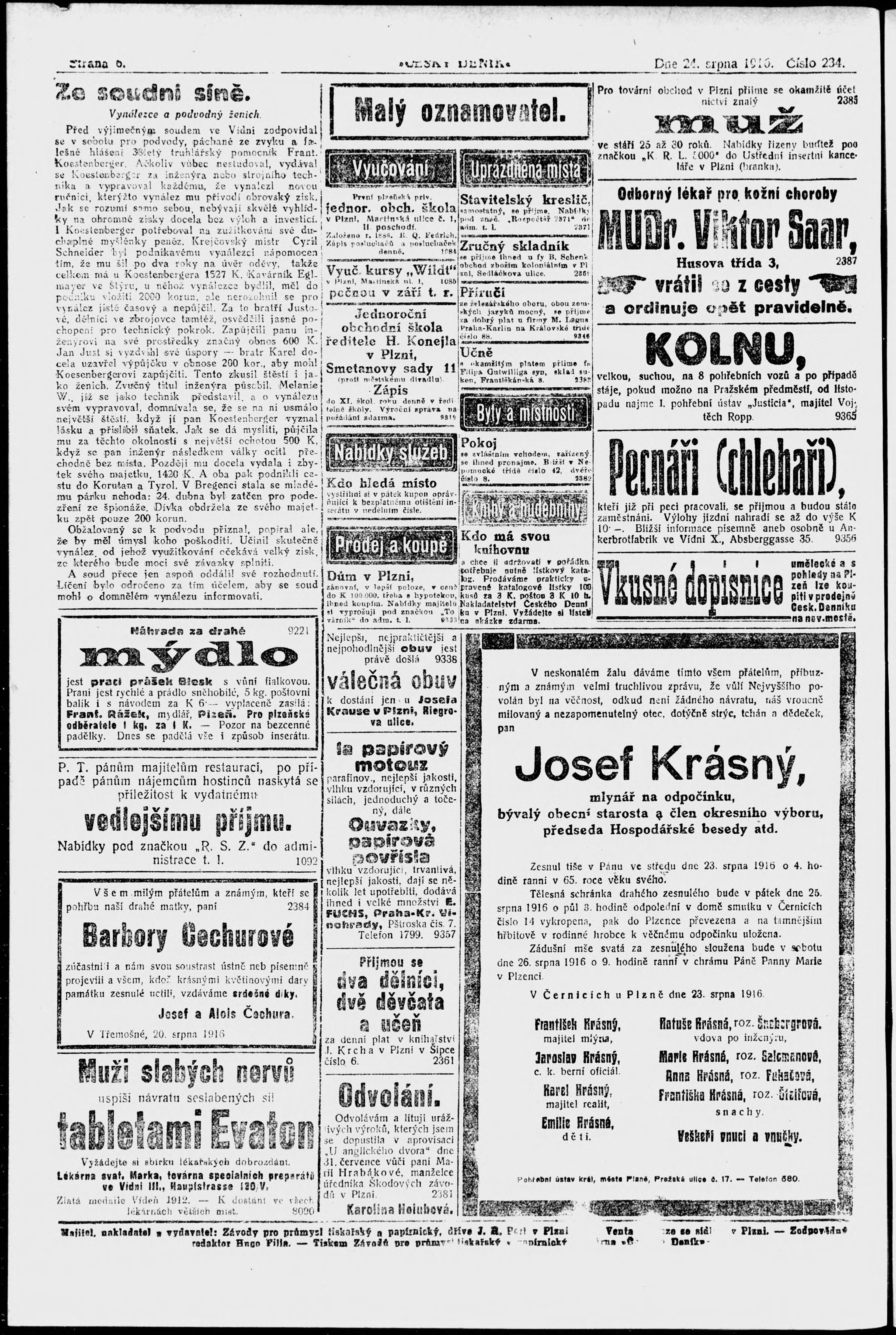 * Datum vydání výtisku: 24.8.1916 Číslo výtisku: 234