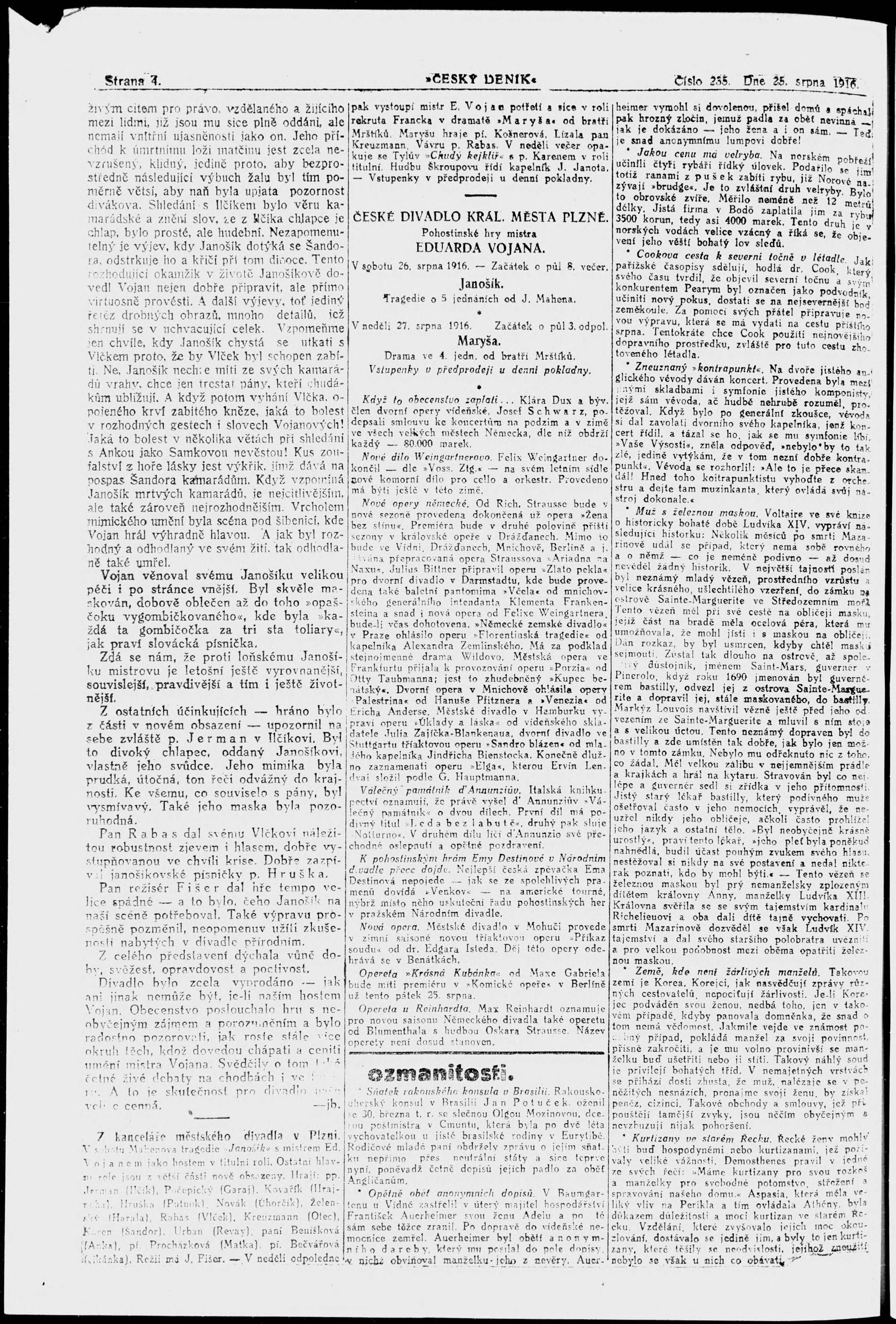 * Datum vydání výtisku: 25.8.1916 Číslo výtisku: 235