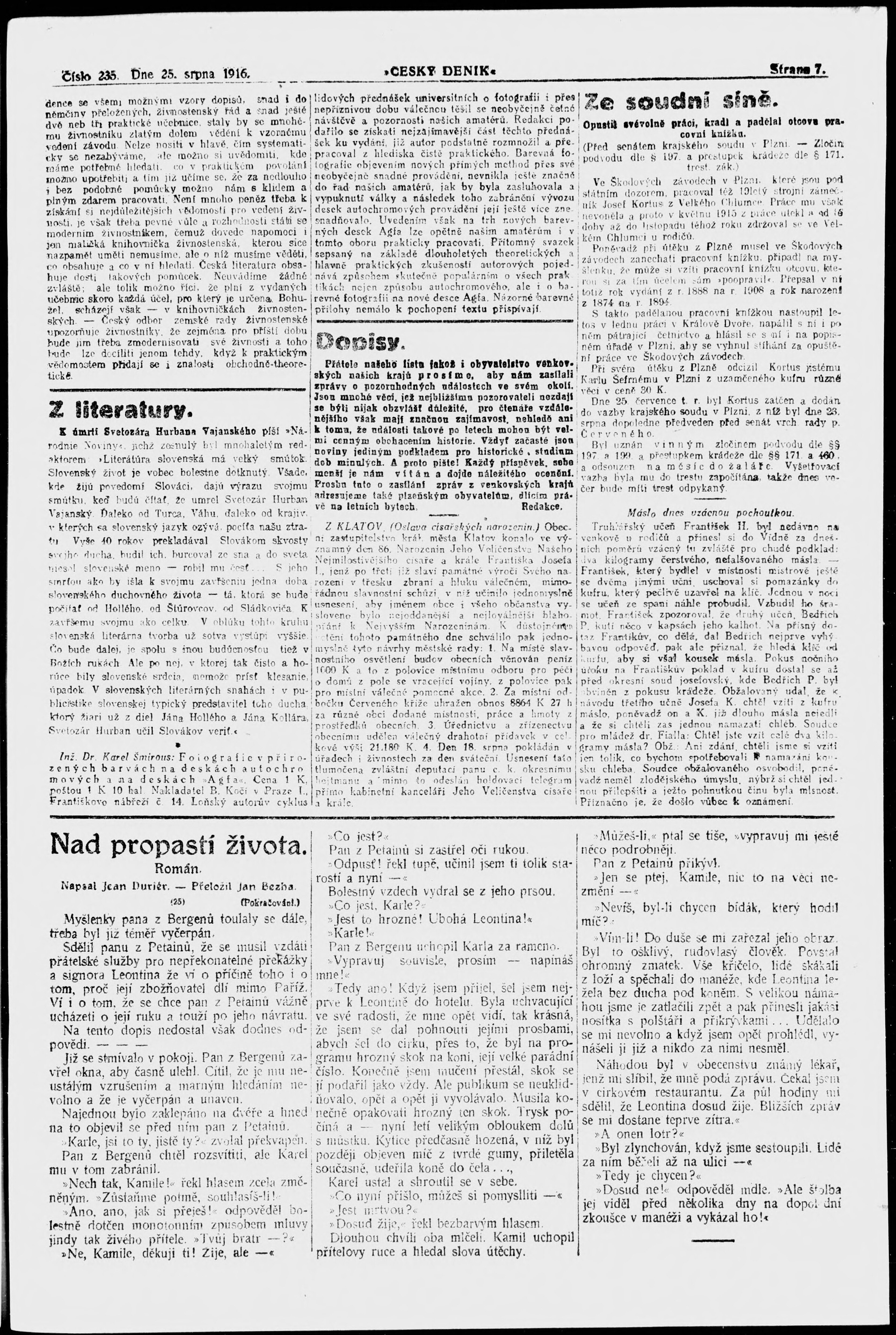 * Datum vydání výtisku: 25.8.1916 Číslo výtisku: 235