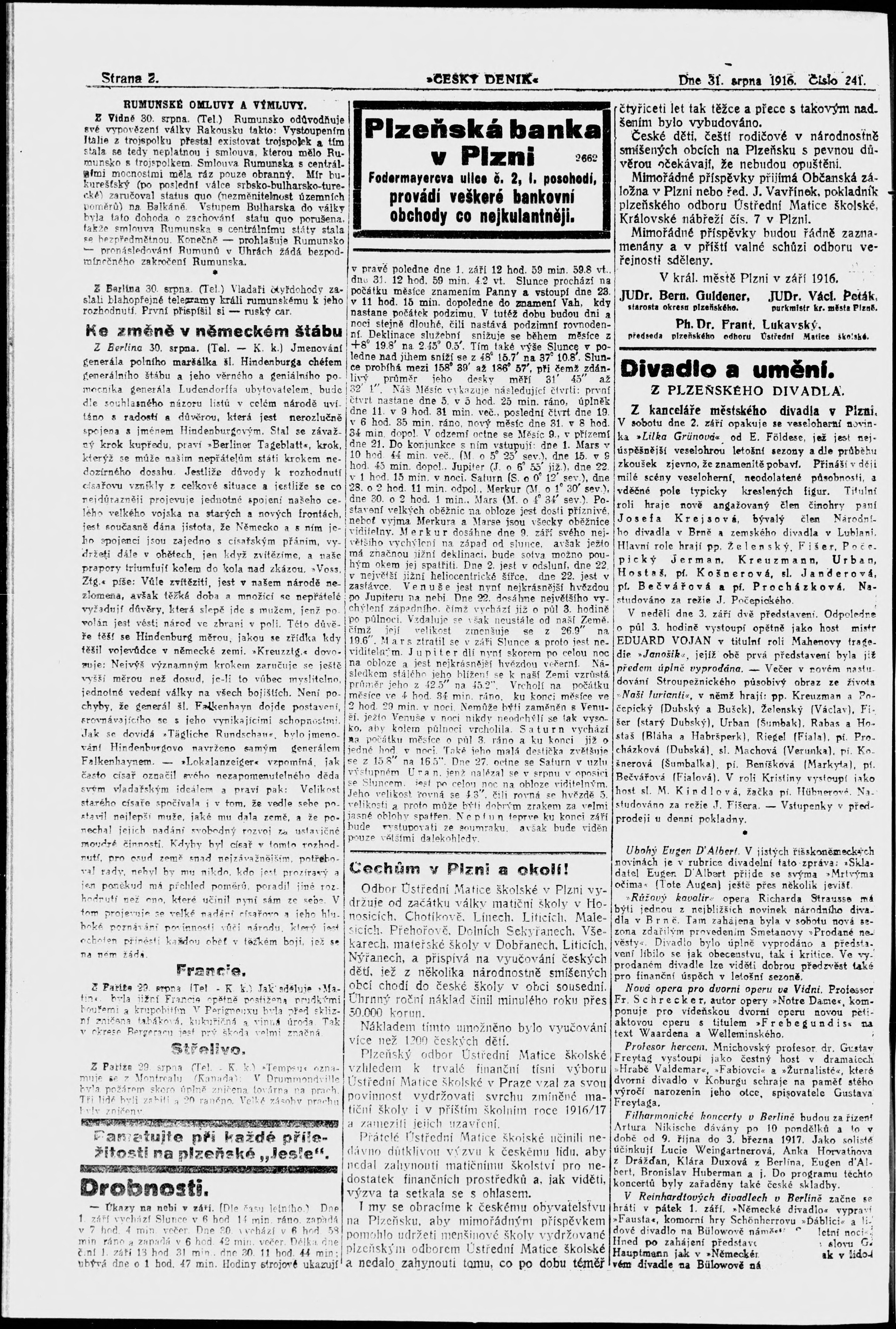 * Datum vydání výtisku: 31.8.1916 Číslo výtisku: 241