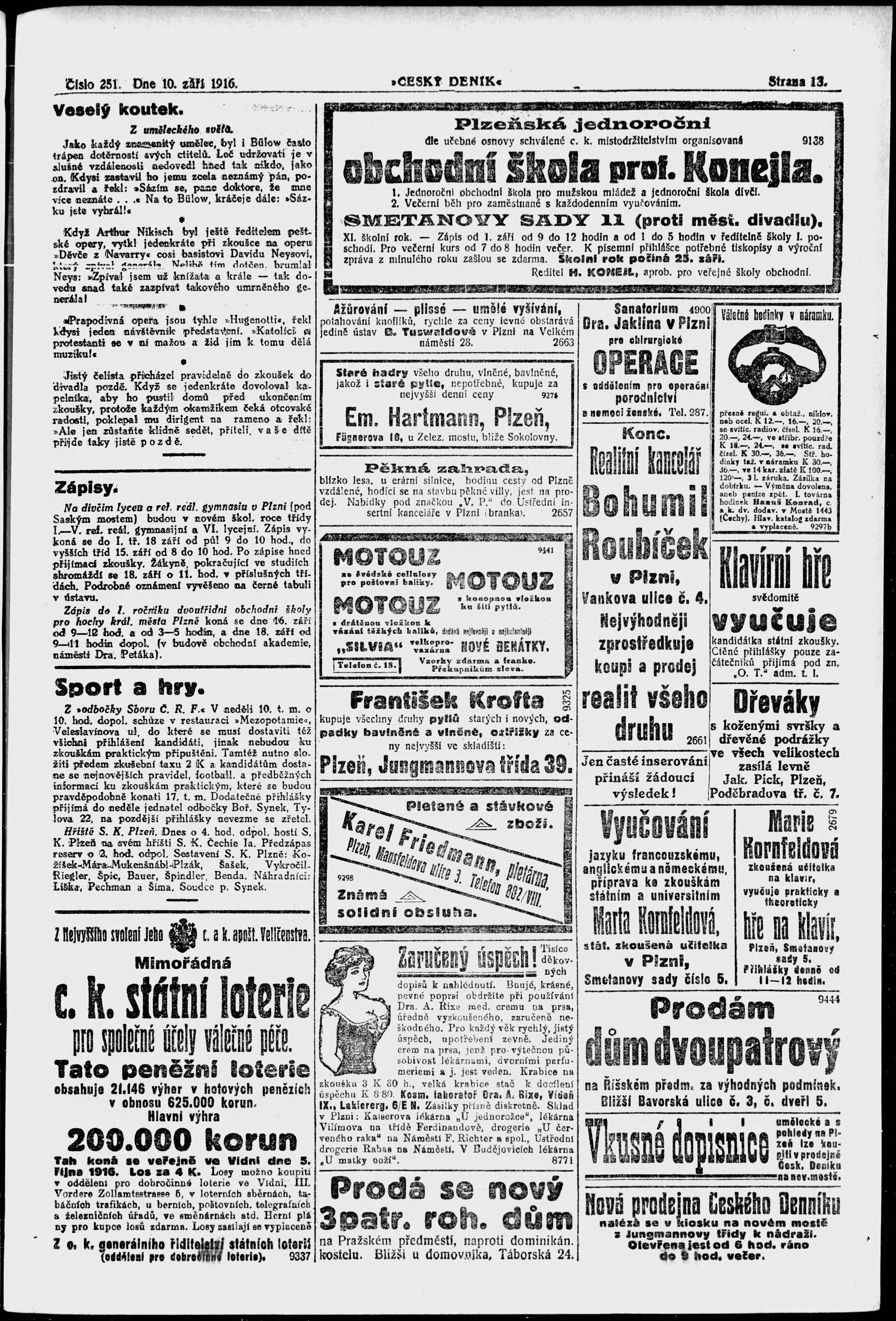 * Datum vydání výtisku: 10.9.1916 Číslo výtisku: 251