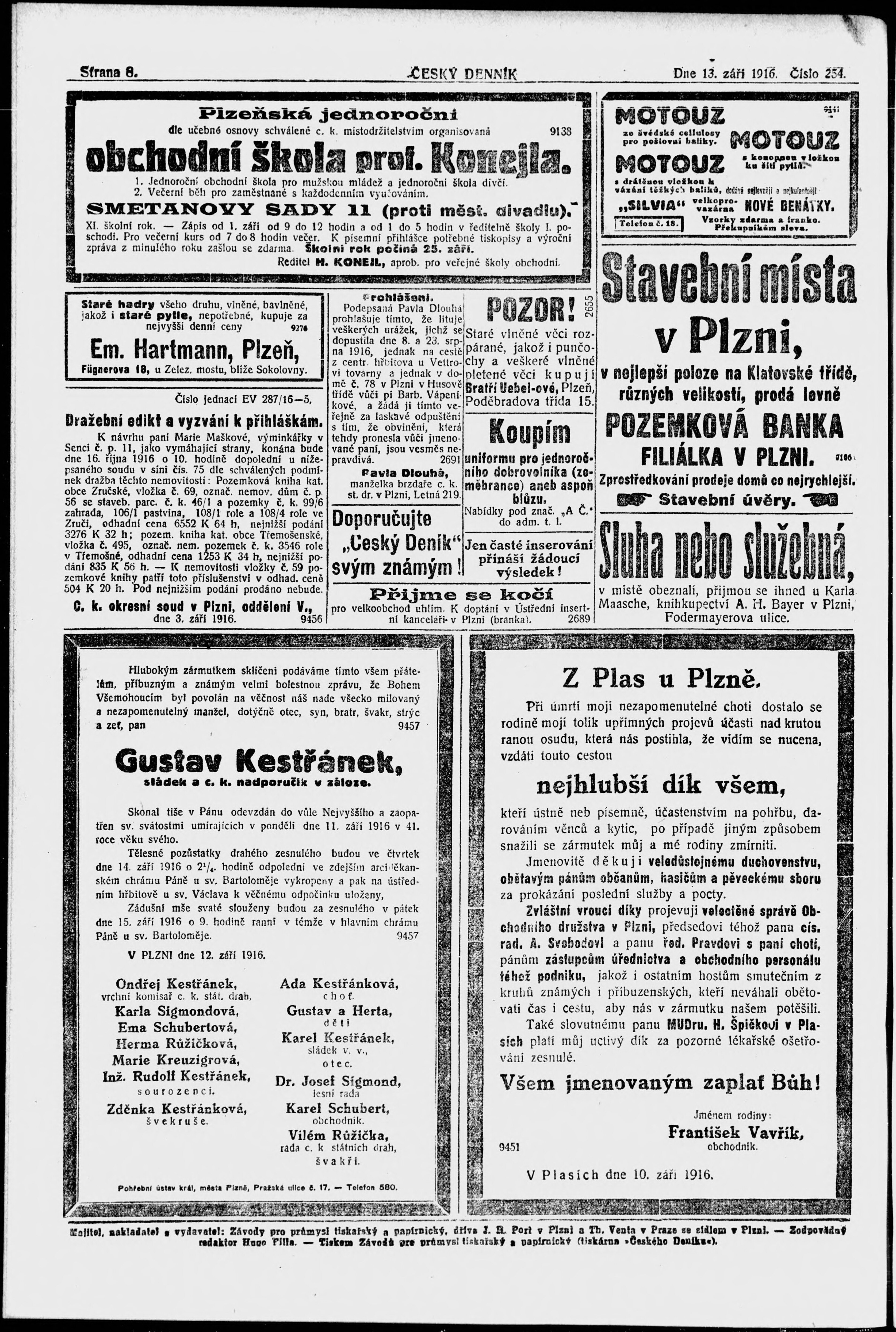 * Datum vydání výtisku: 13.9.1916 Číslo výtisku: 254