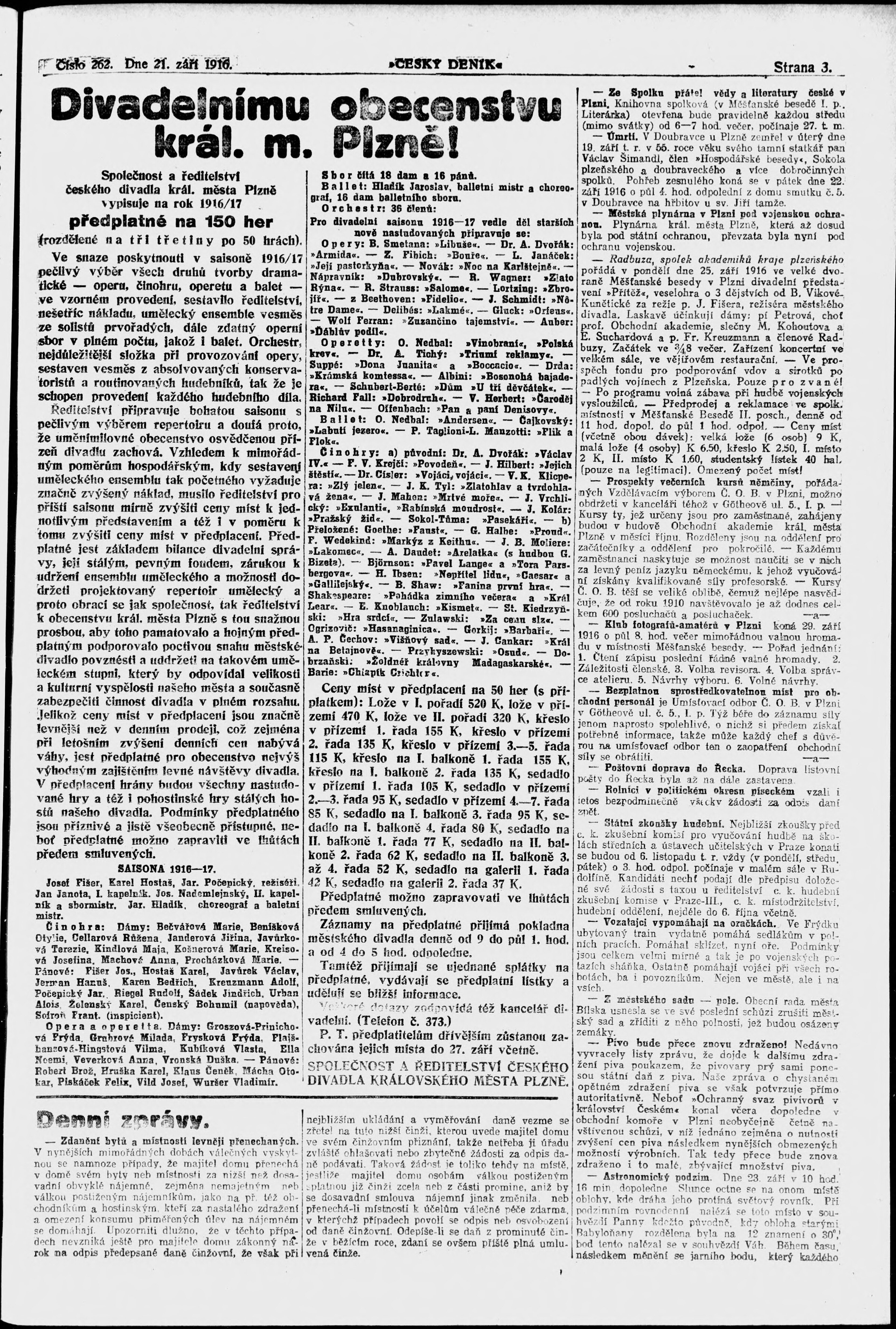 * Datum vydání výtisku: 21.9.1916 Číslo výtisku: 262