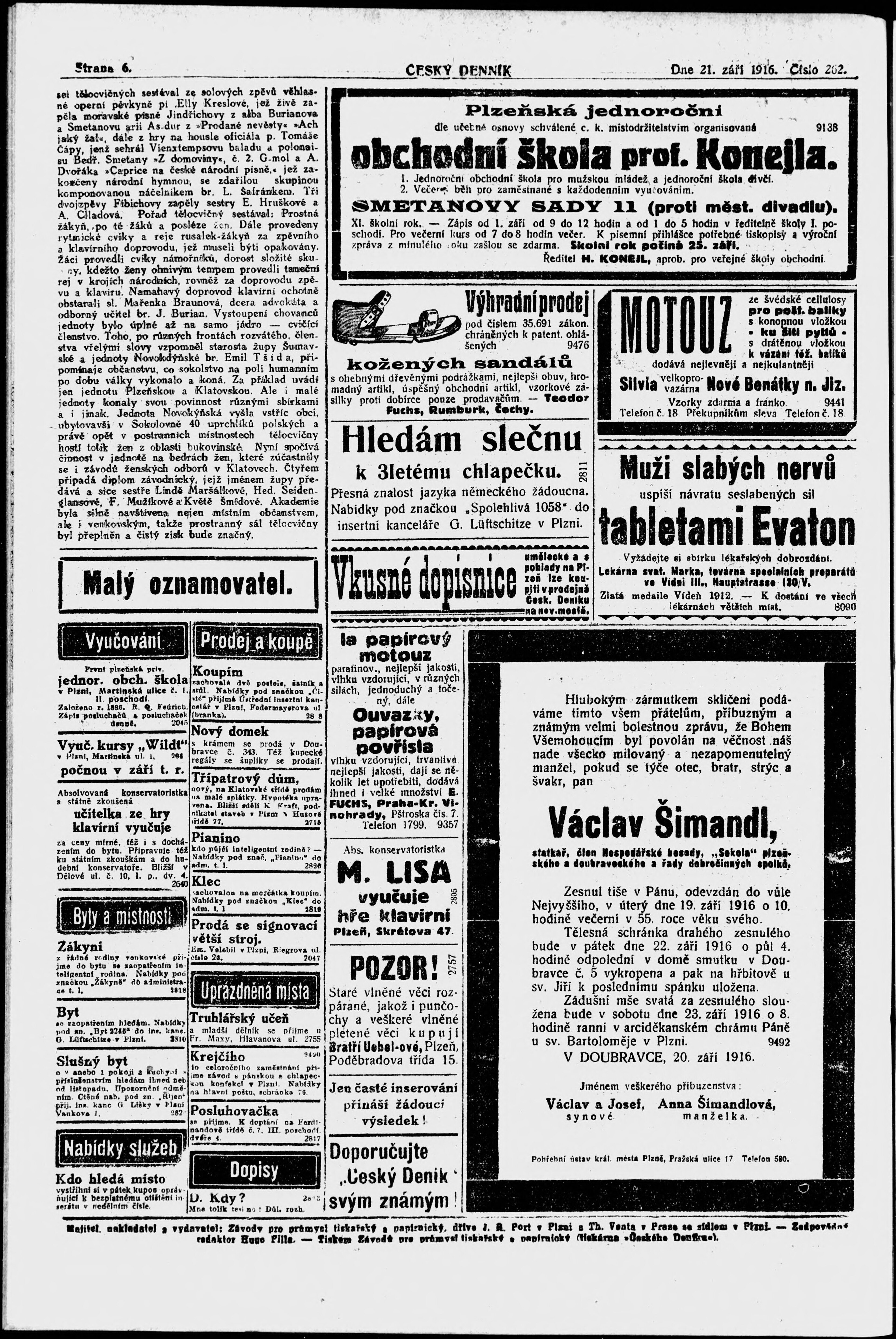 * Datum vydání výtisku: 21.9.1916 Číslo výtisku: 262